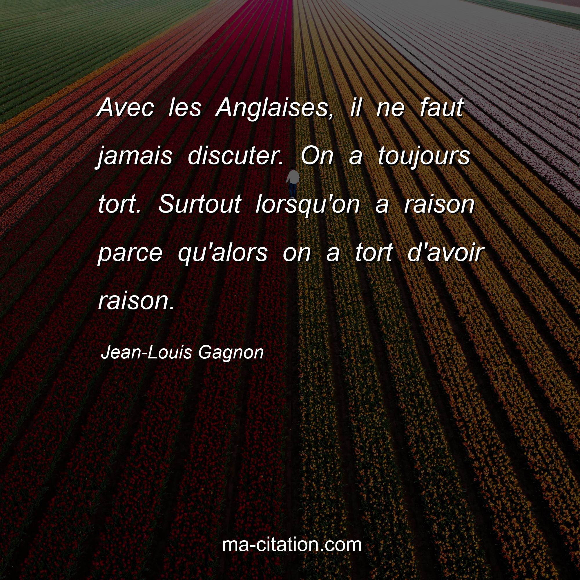 Citation sur la vie de Jean-Louis Gagnon :Avec les Anglaises, il ne faut jamais discuter. On a toujours tort. Surtout lorsqu'on a raison parce qu'alors on a tort d'avoir raison.