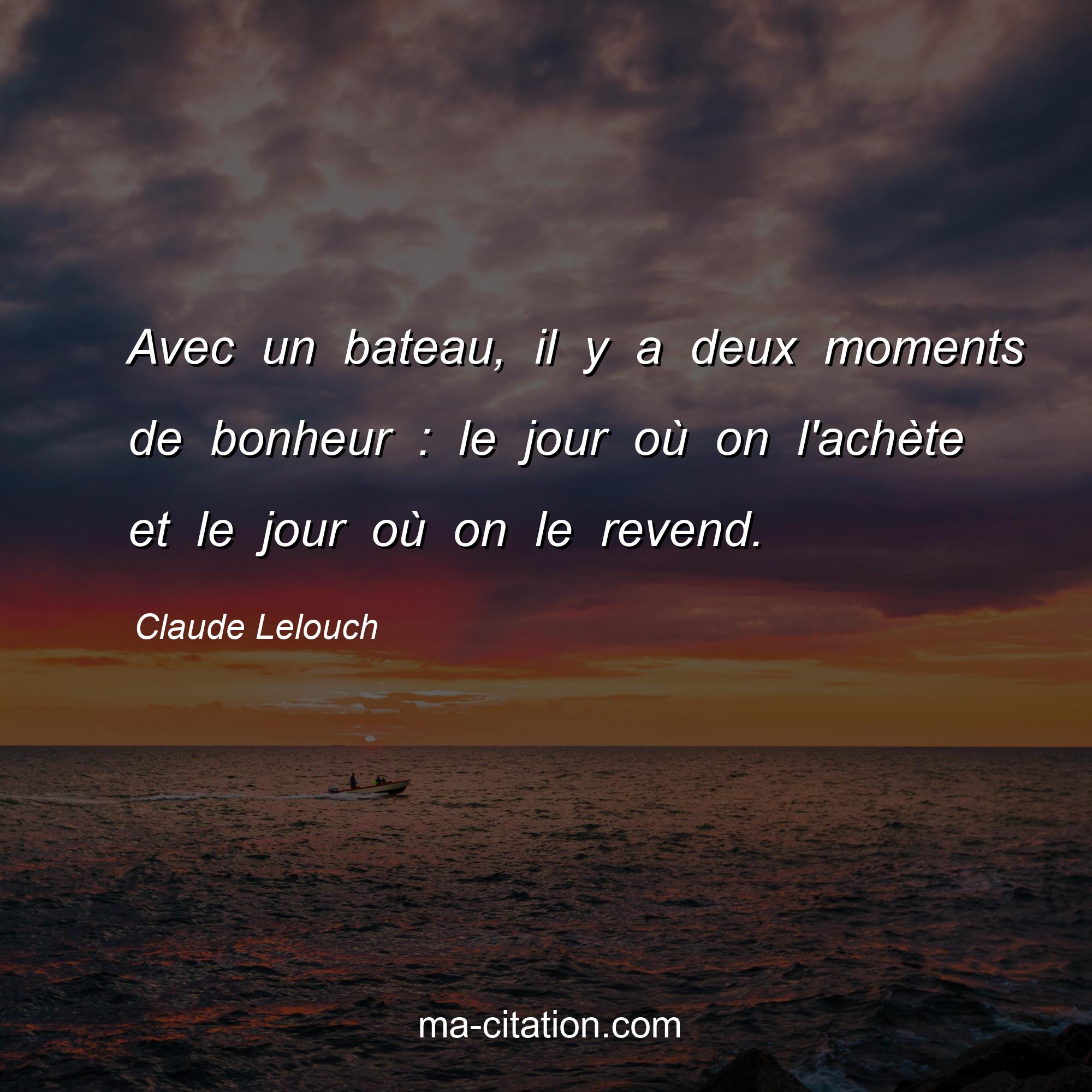Citation sur la vie de Claude Lelouch :Avec un bateau, il y a deux moments de bonheur : le jour où on l'achète et le jour où on le revend.