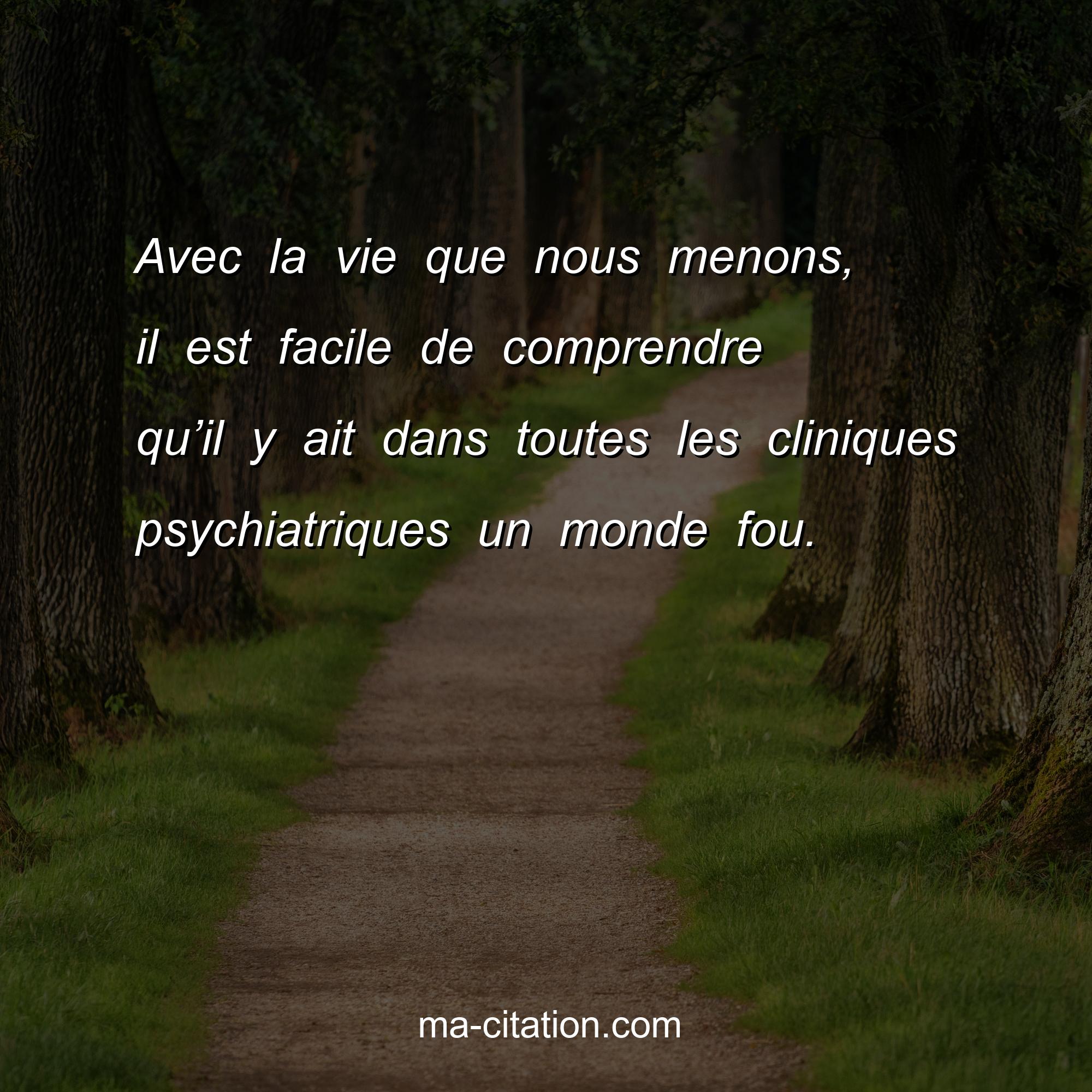Citation sur la vie :Avec la vie que nous menons, il est facile de comprendre qu’il y ait dans toutes les cliniques psychiatriques un monde fou.