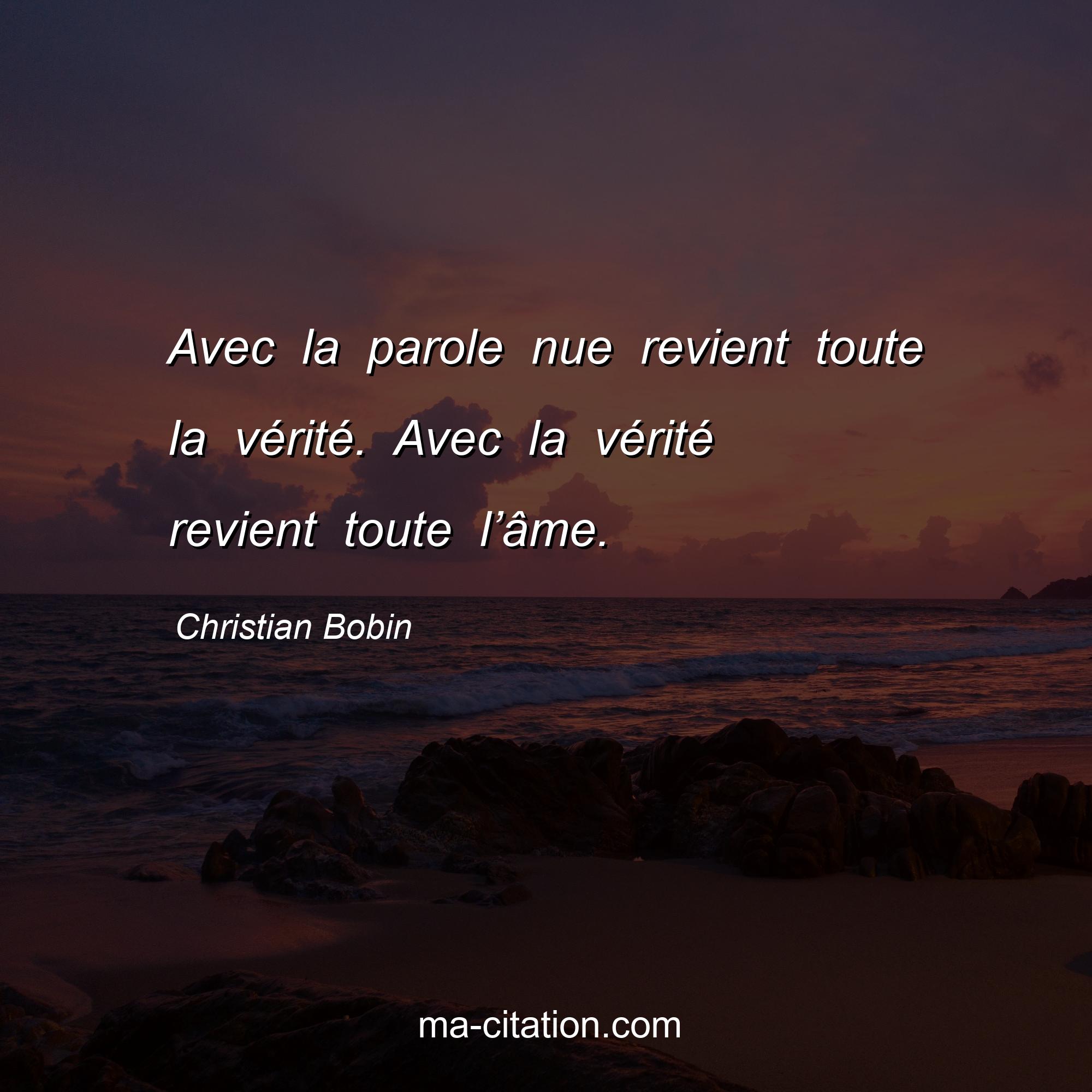 Citation sur la vie de Christian Bobin :Avec la parole nue revient toute la vérité. Avec la vérité revient toute l’âme.