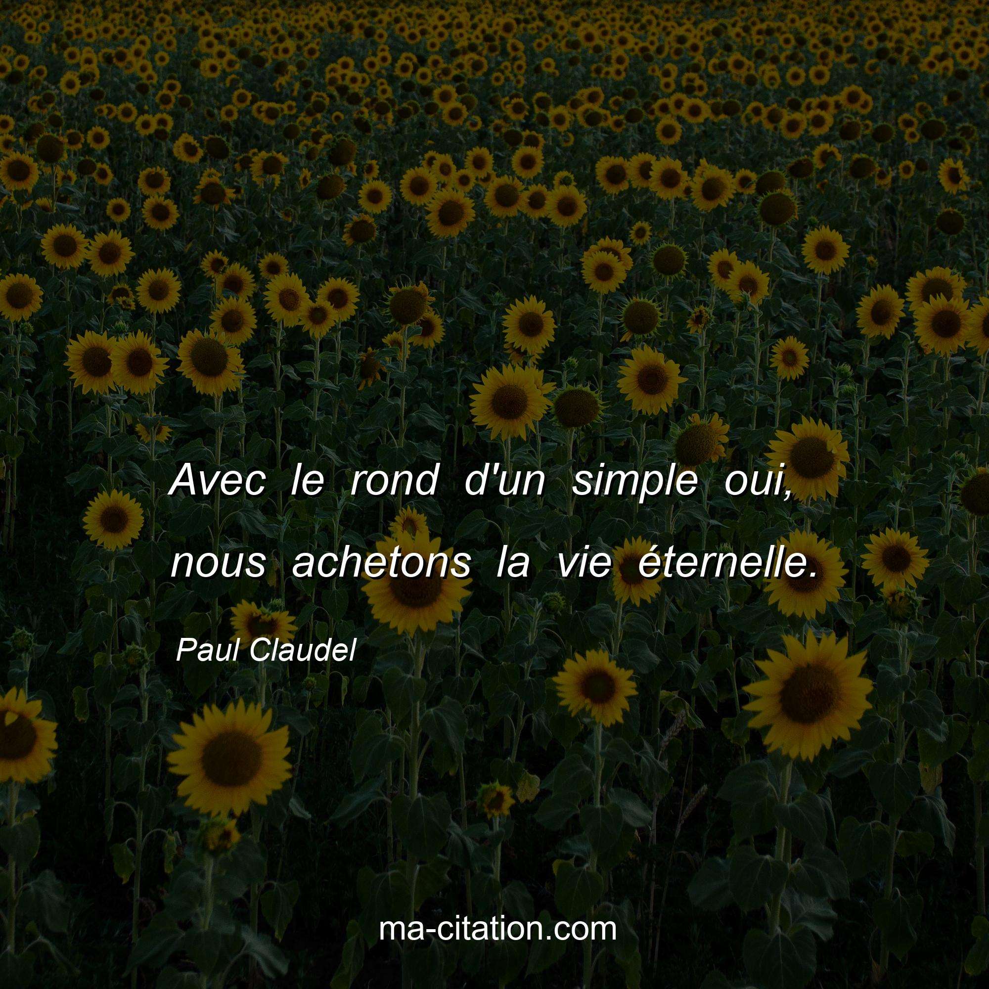 Citation sur la vie de Paul Claudel :Avec le rond d'un simple oui, nous achetons la vie éternelle.