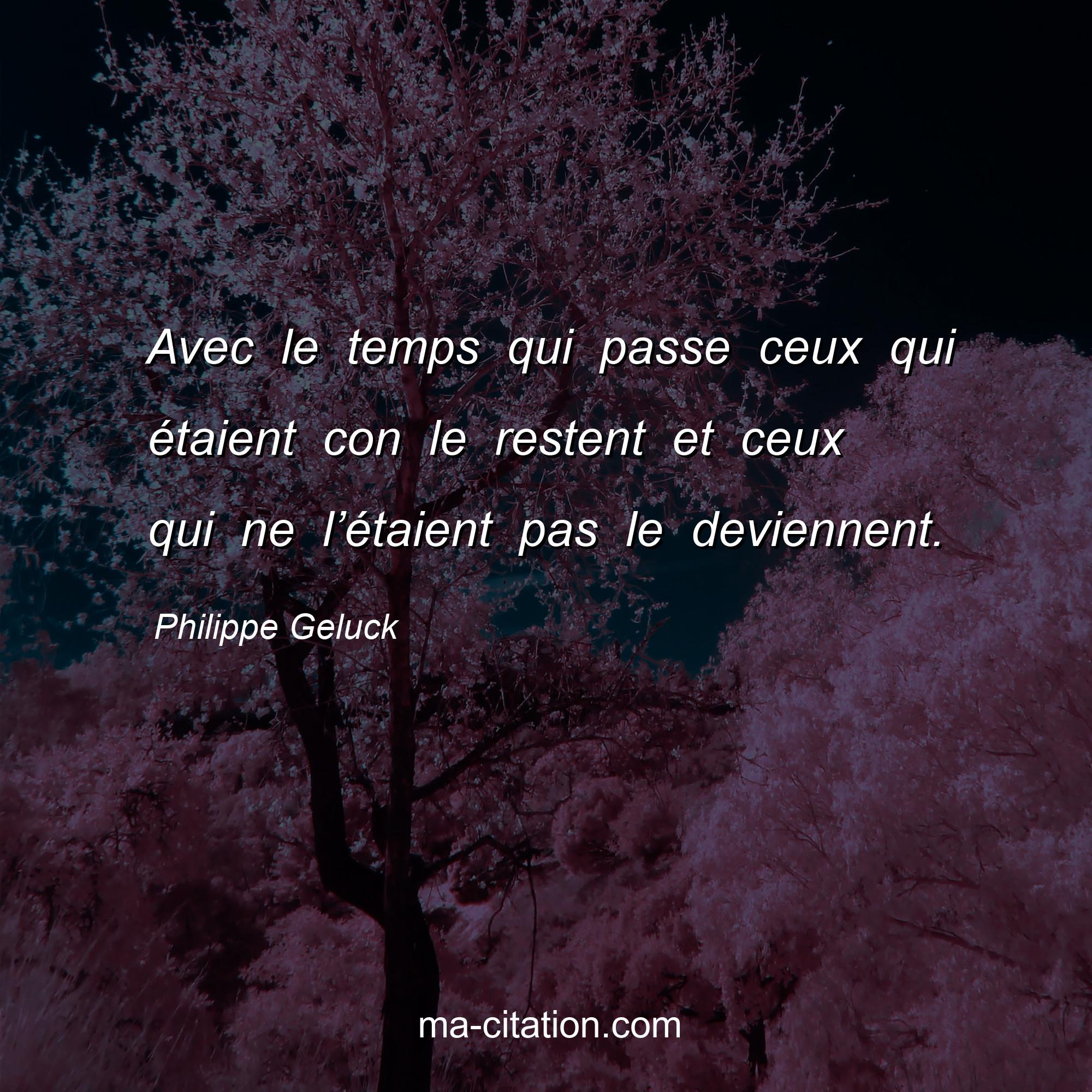 Citation sur la vie de Philippe Geluck :Avec le temps qui passe ceux qui étaient con le restent et ceux qui ne l’étaient pas le deviennent.