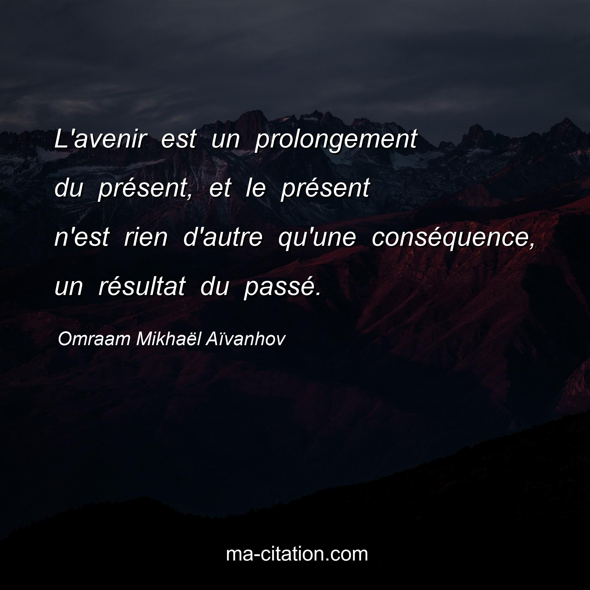 Citation sur la vie d'Omraam Mikhaël Aïvanhov :L'avenir est un prolongement du présent, et le présent n'est rien d'autre qu'une conséquence, un résultat du passé.