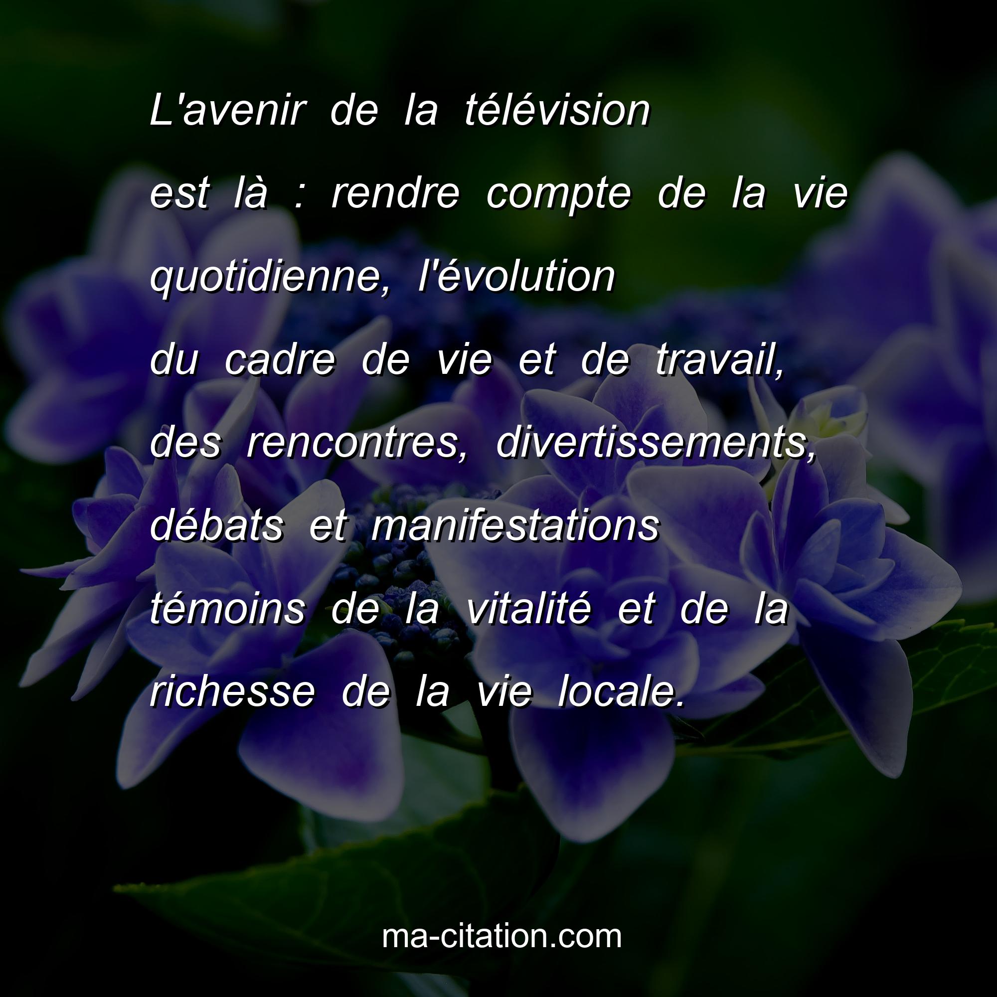 Rémy Pflimlin est l'auteur de la citation sur la vie "L'avenir de la télévision est là : rendre compte de la vie quotidienne, l'évolution du cadre de vie et de travail, des rencontres, divertissements, débats et manifestations témoins de la vitalité et de la richesse de la vie locale.".