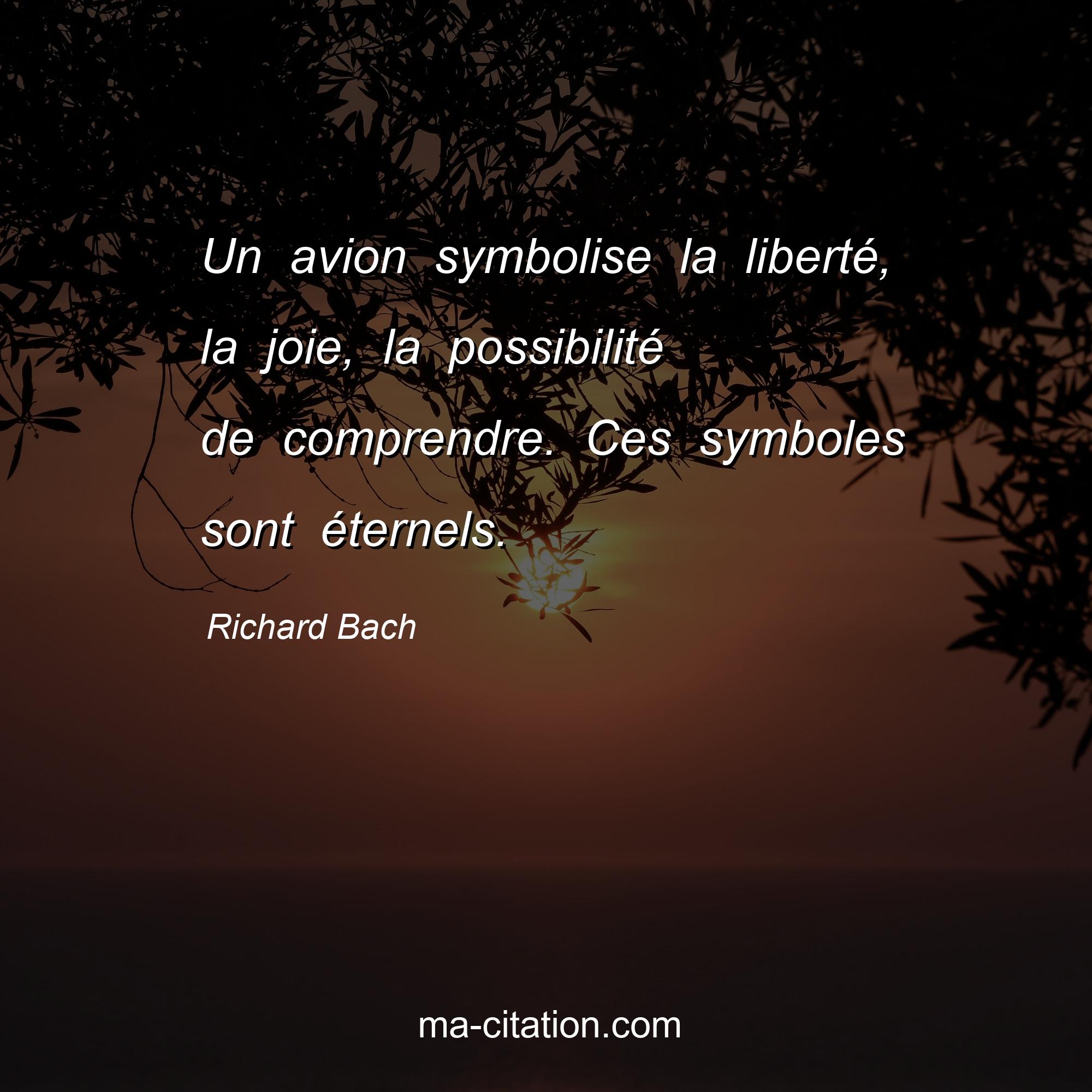 Citation sur la vie de Richard Bach :Un avion symbolise la liberté, la joie, la possibilité de comprendre. Ces symboles sont éternels.
