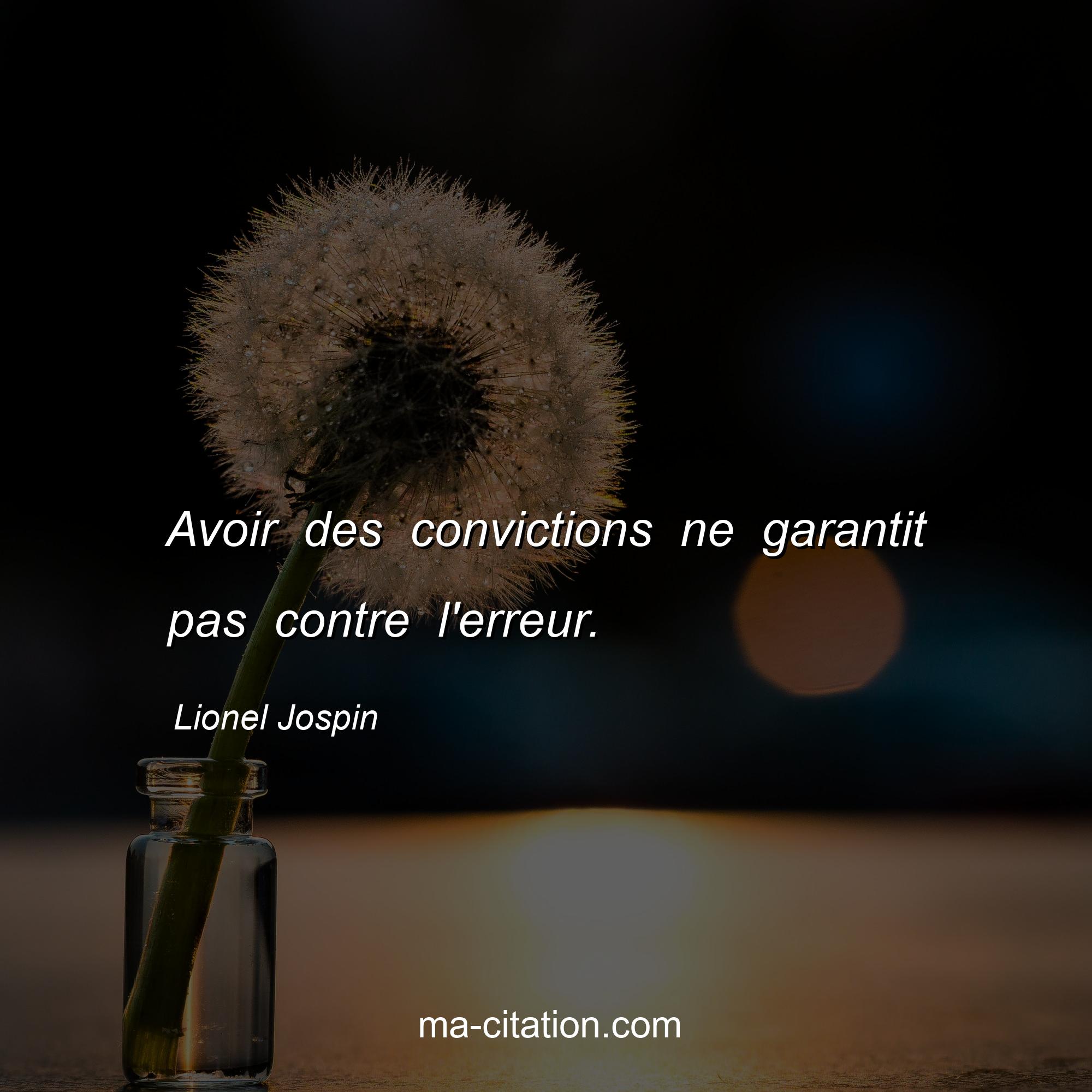 Citation sur la vie de Lionel Jospin :Avoir des convictions ne garantit pas contre l'erreur.