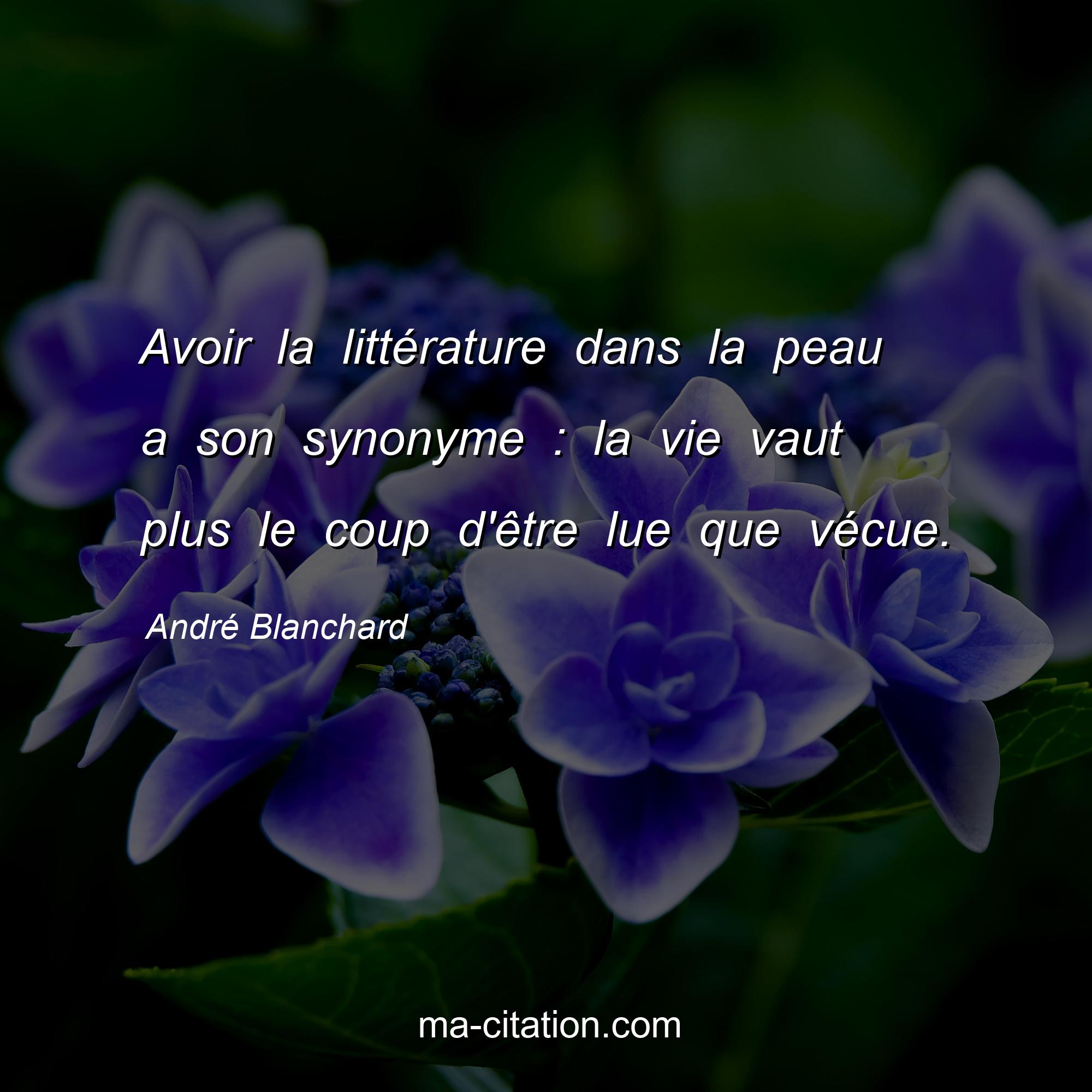 André Blanchard est l'auteur de la citation sur la vie "Avoir la littérature dans la peau a son synonyme : la vie vaut plus le coup d'être lue que vécue.".