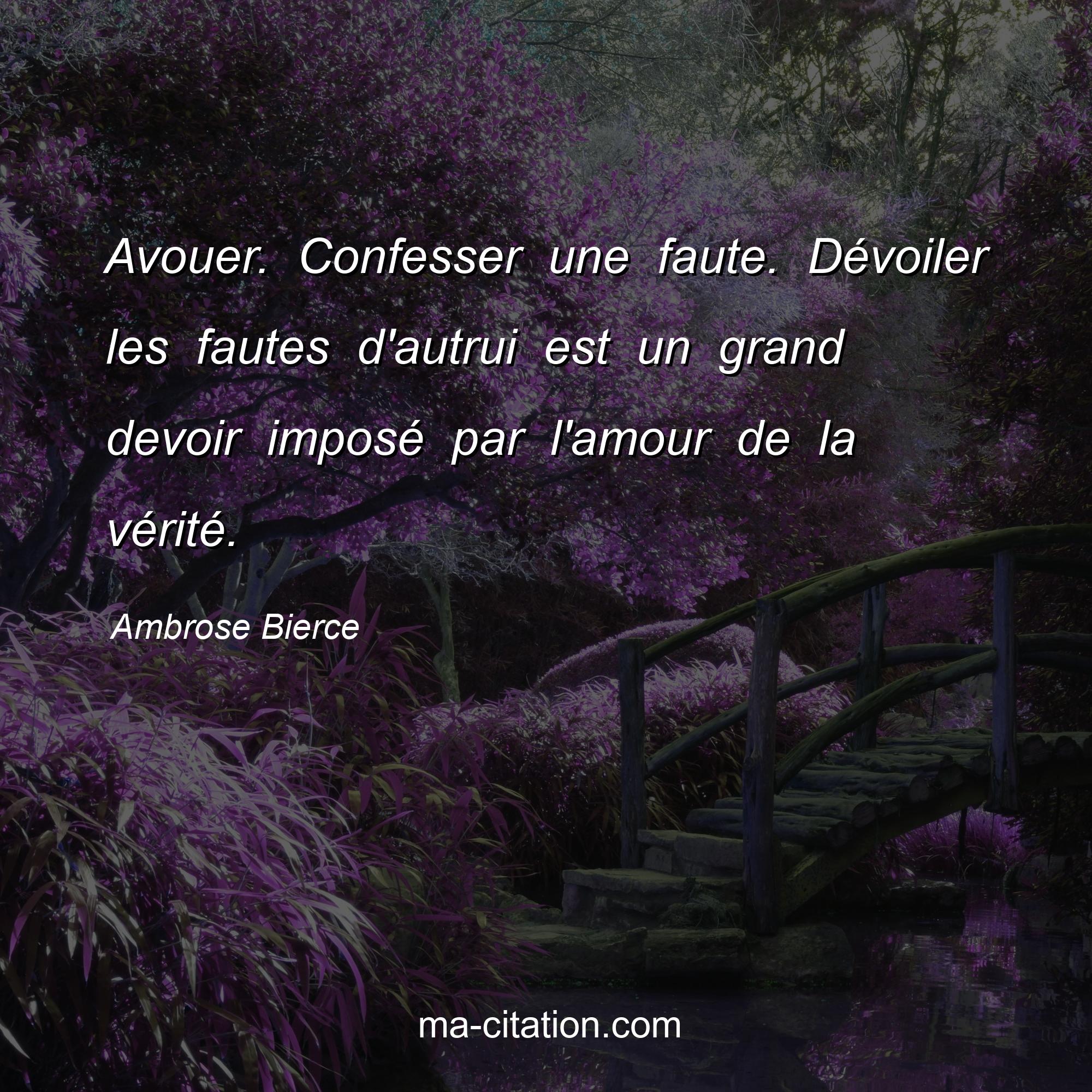 Citation sur la vie d'Ambrose Bierce :Avouer. Confesser une faute. Dévoiler les fautes d'autrui est un grand devoir imposé par l'amour de la vérité.