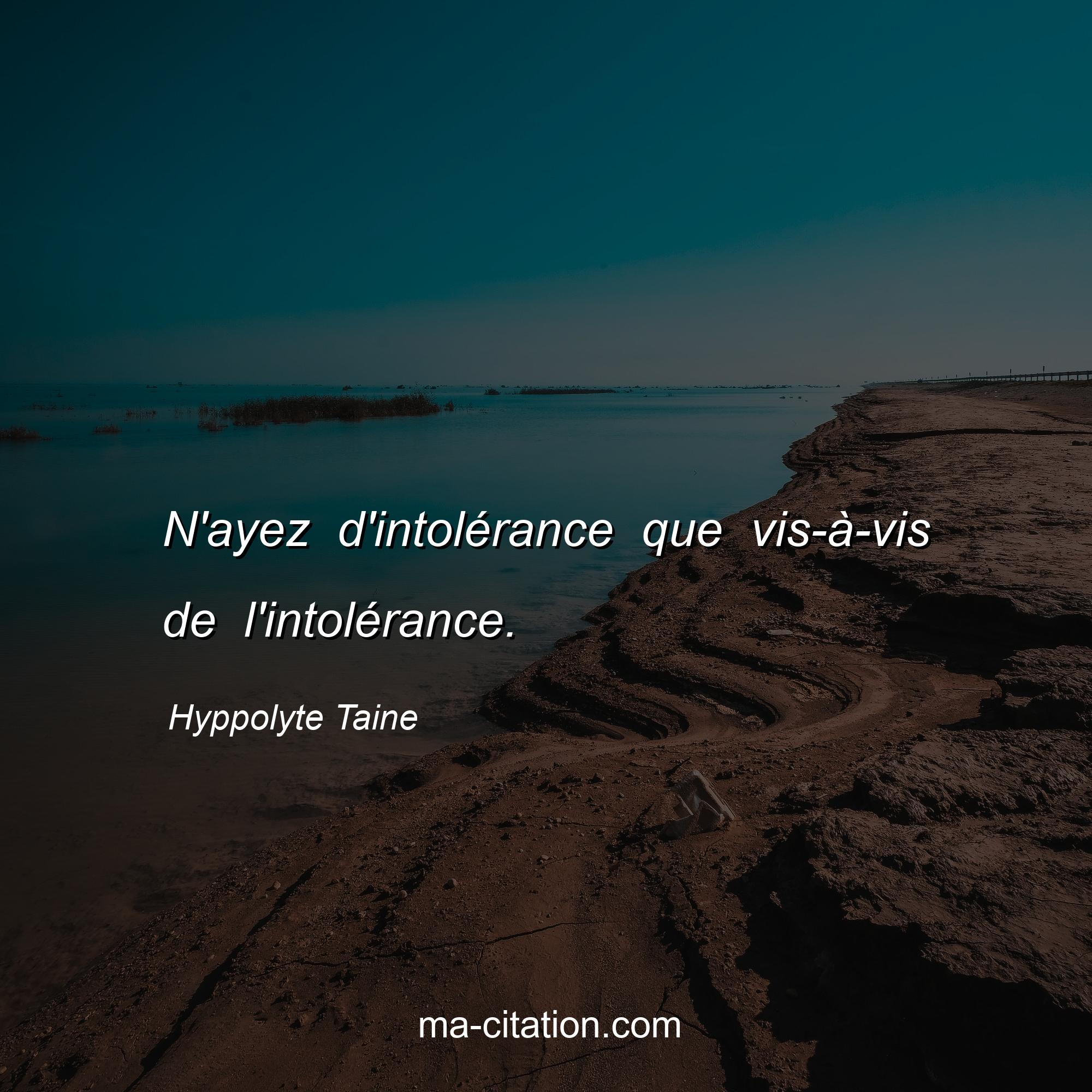 Citation sur la vie de Hyppolyte Taine :N'ayez d'intolérance que vis-à -vis de l'intolérance.