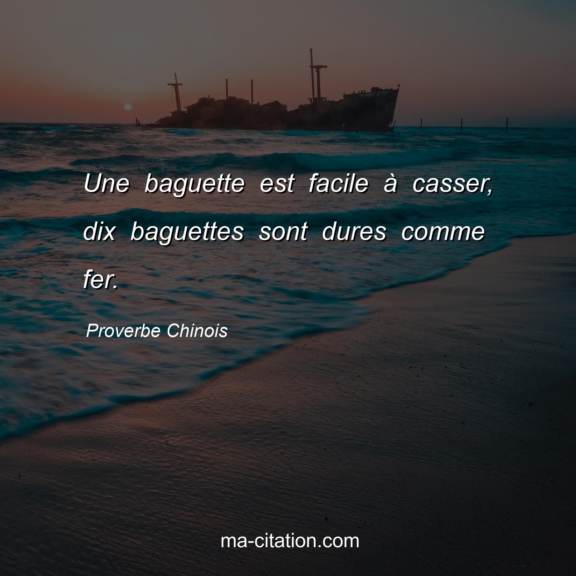 Proverbe Chinois sur la vie :Une baguette est facile à casser, dix baguettes sont dures comme fer.