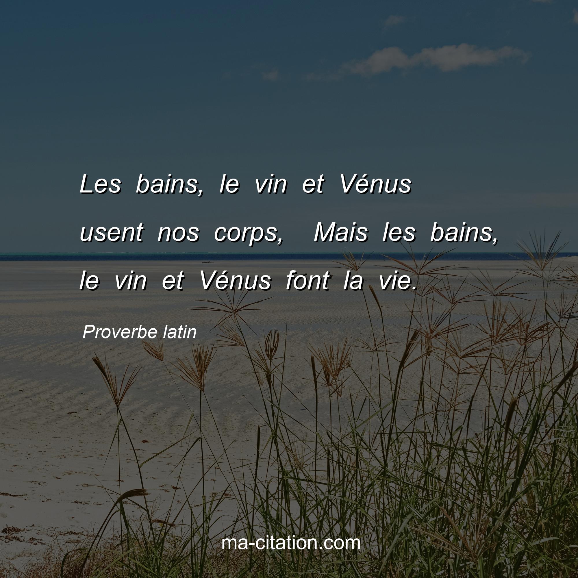 Proverbe latin sur la vie :Les bains, le vin et Vénus usent nos corps, Mais les bains, le vin et Vénus font la vie.