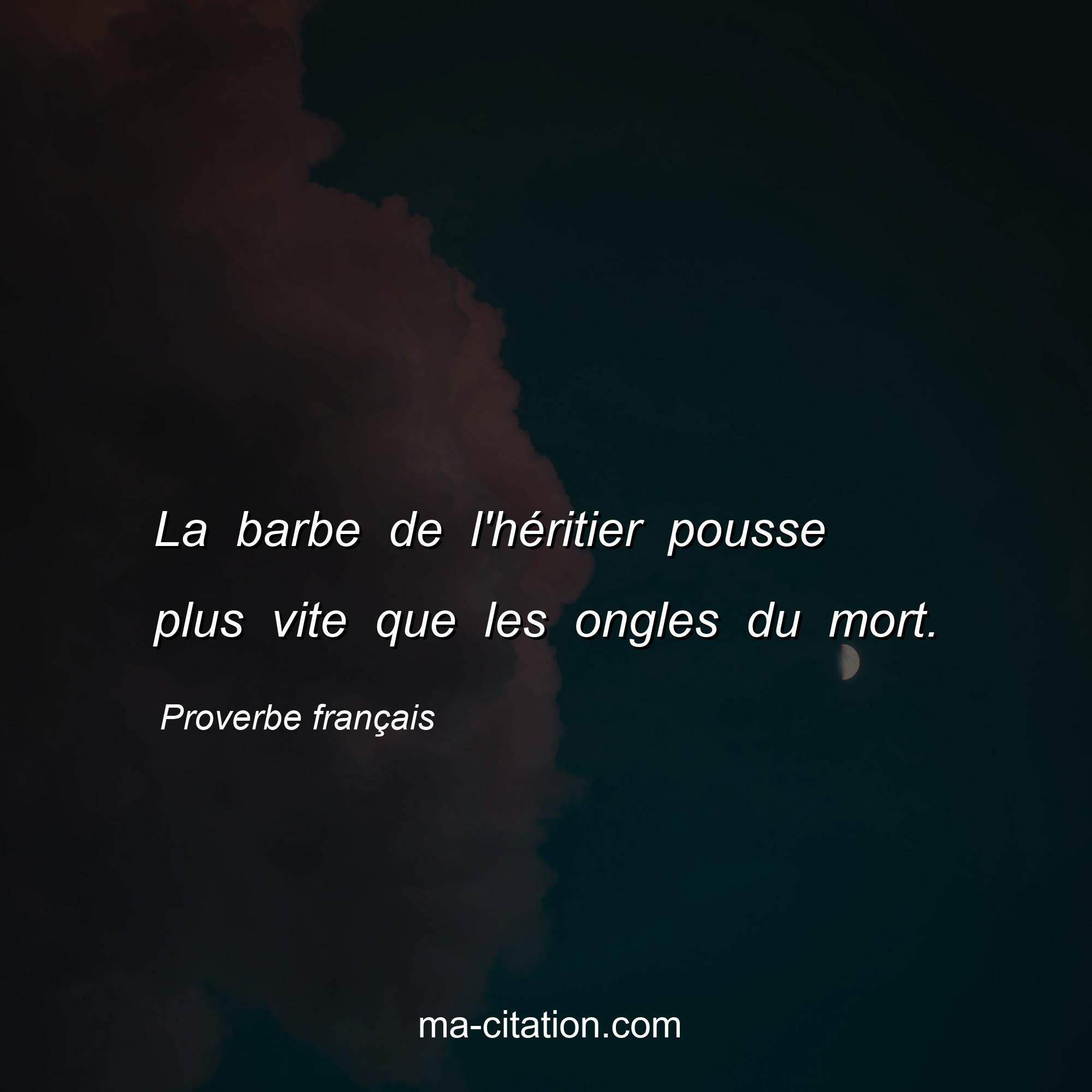 Proverbe français sur la vie :La barbe de l'héritier pousse plus vite que les ongles du mort.