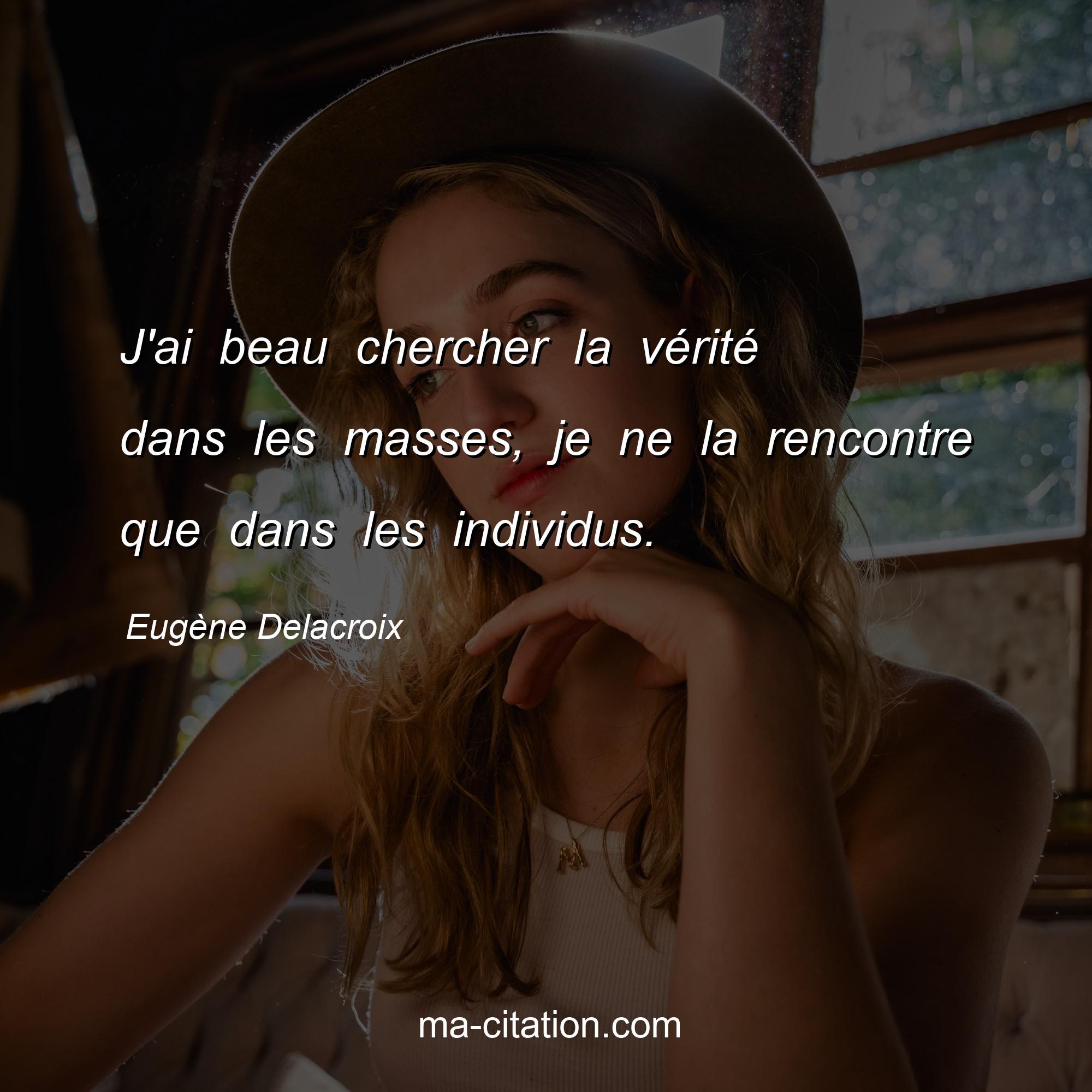 Citation sur la vie d'Eugène Delacroix :J'ai beau chercher la vérité dans les masses, je ne la rencontre que dans les individus.