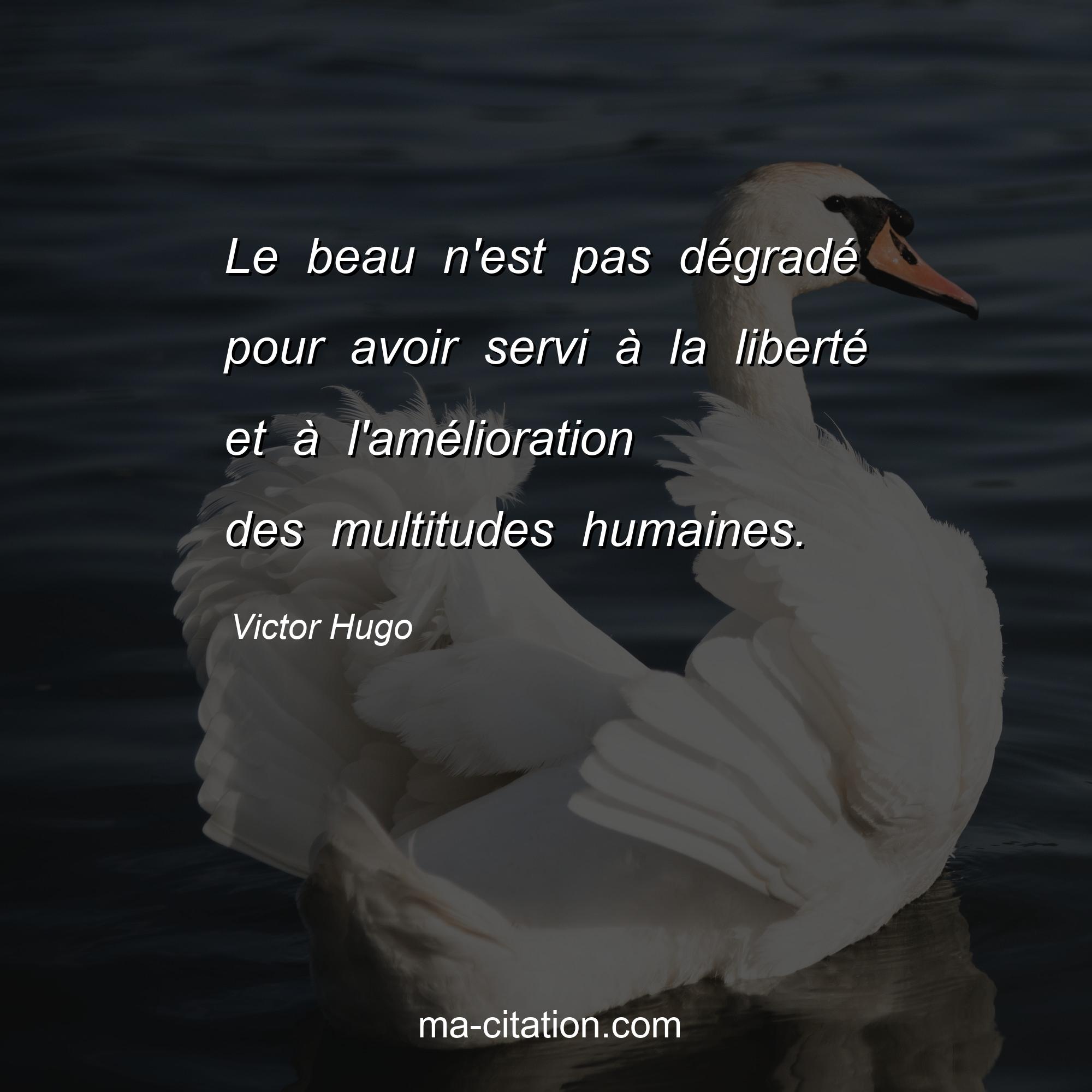 Citation sur la vie de Victor Hugo :Le beau n'est pas dégradé pour avoir servi à la liberté et à l'amélioration des multitudes humaines.