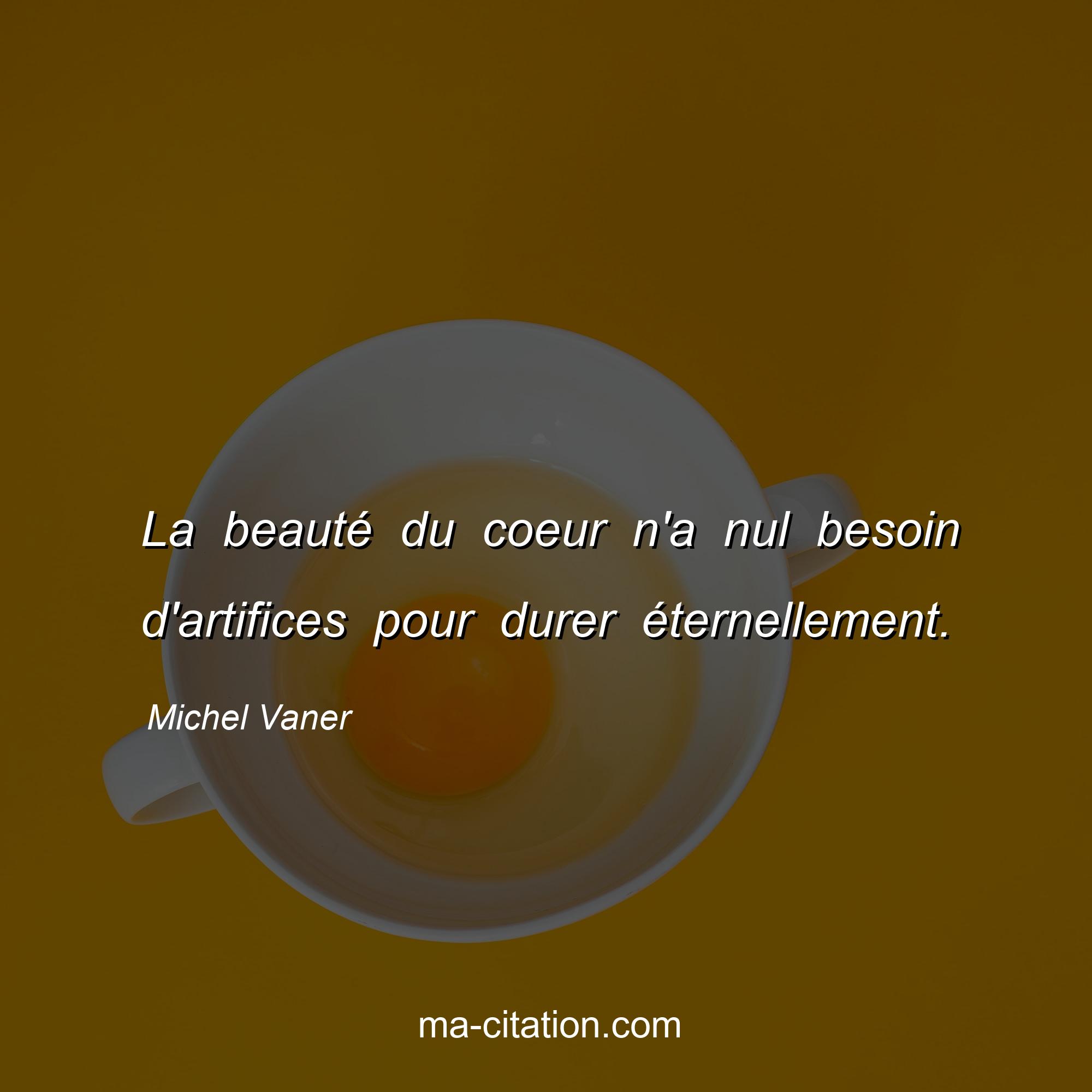 Citation sur la vie de Michel Vaner :La beauté du coeur n'a nul besoin d'artifices pour durer éternellement.