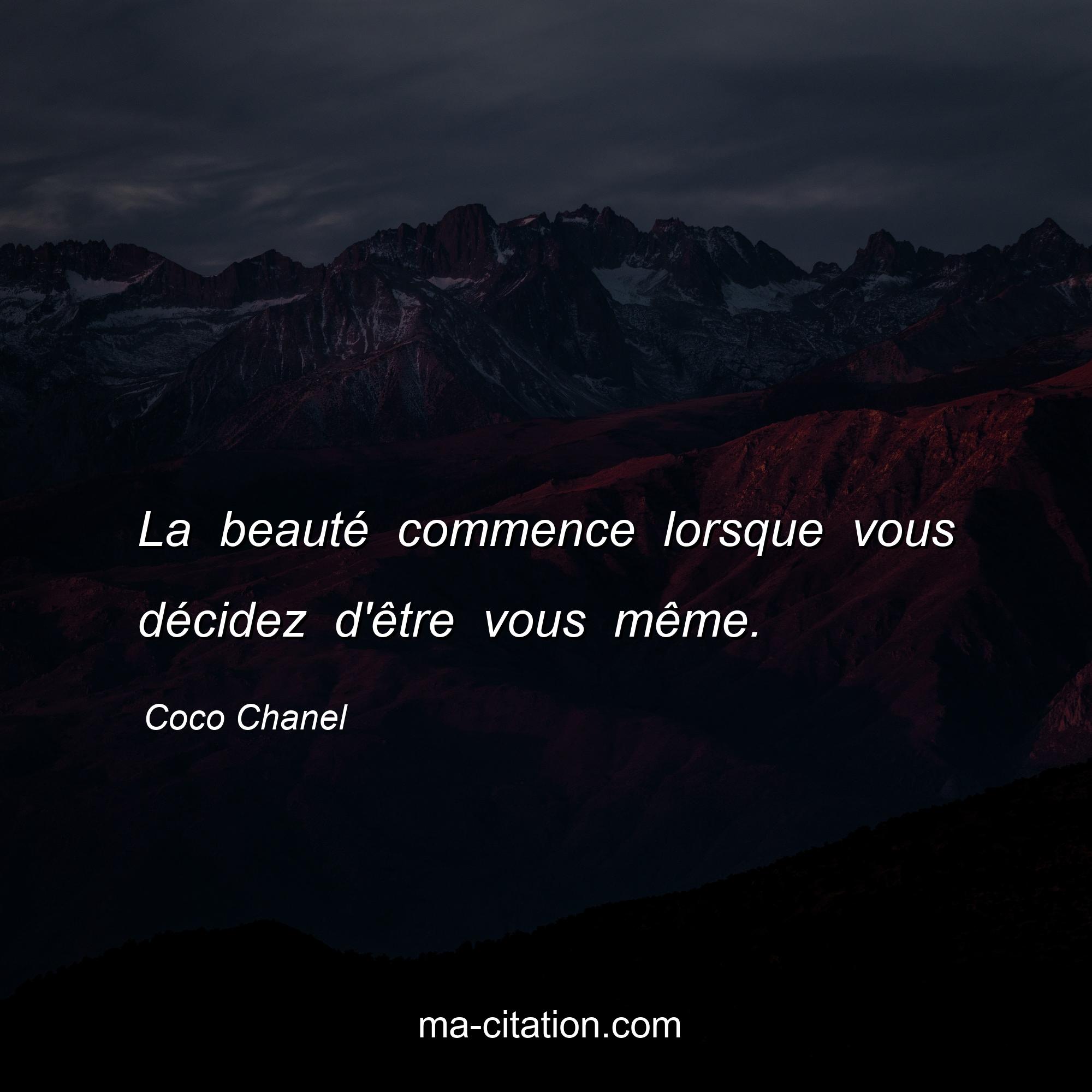 Citation sur la vie de Coco Chanel :La beauté commence lorsque vous décidez d'être vous même.