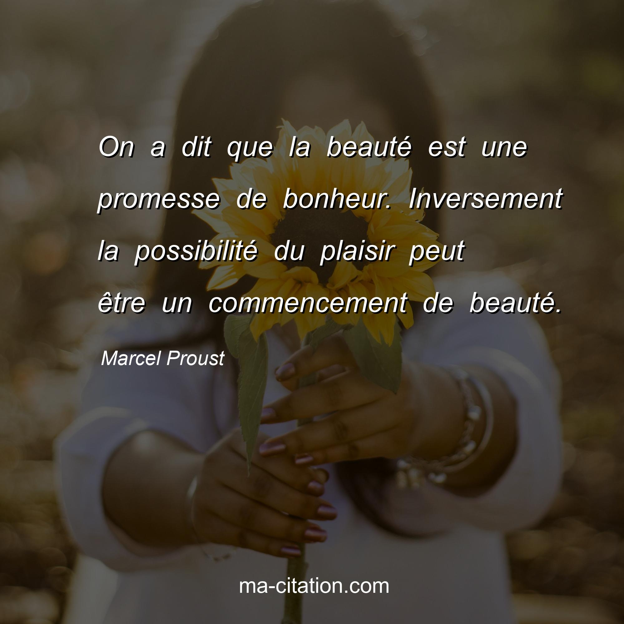 Citation sur la vie de Marcel Proust :On a dit que la beauté est une promesse de bonheur. Inversement la possibilité du plaisir peut être un commencement de beauté.