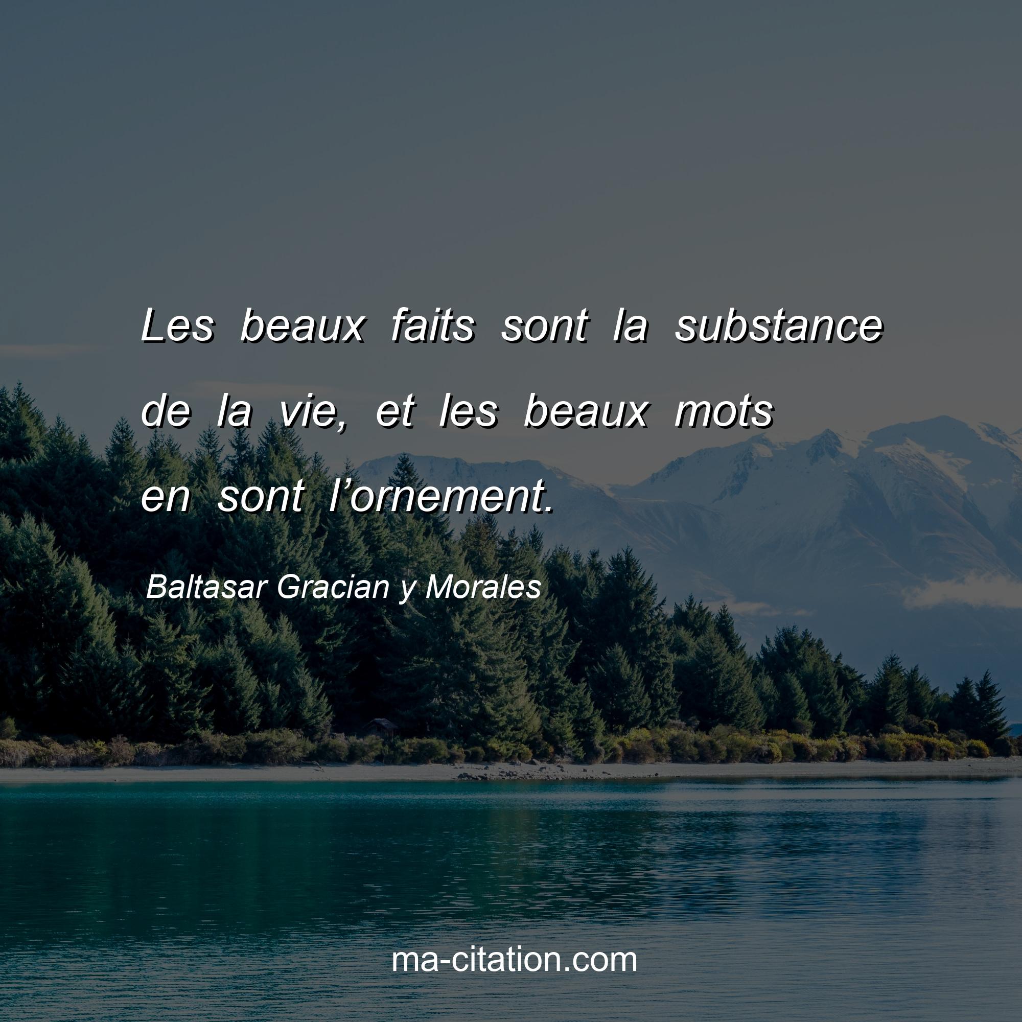 Citation sur la vie de Baltasar Gracian y Morales :Les beaux faits sont la substance de la vie, et les beaux mots en sont l’ornement.