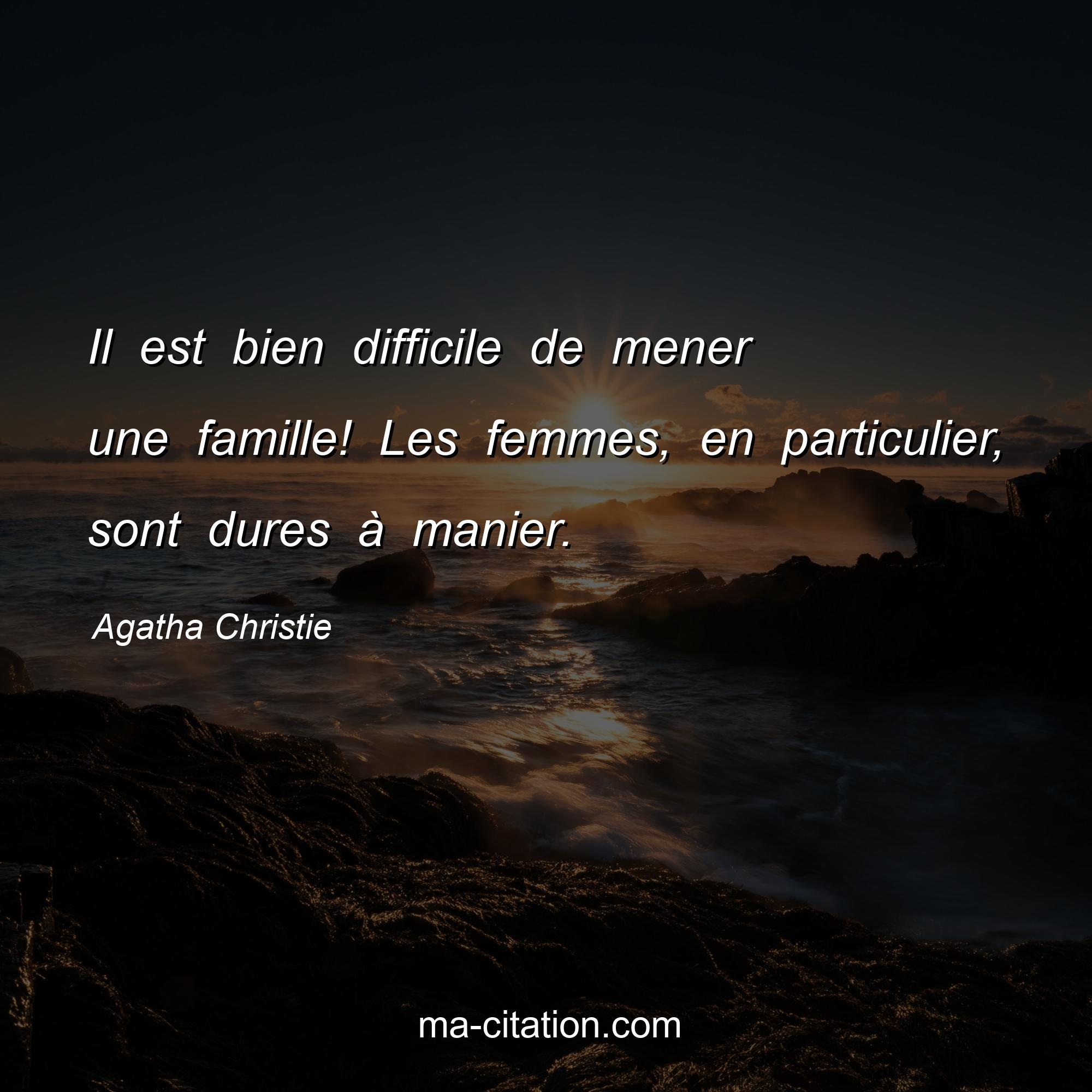 Citation sur la vie d'Agatha Christie :Il est bien difficile de mener une famille! Les femmes, en particulier, sont dures à manier.