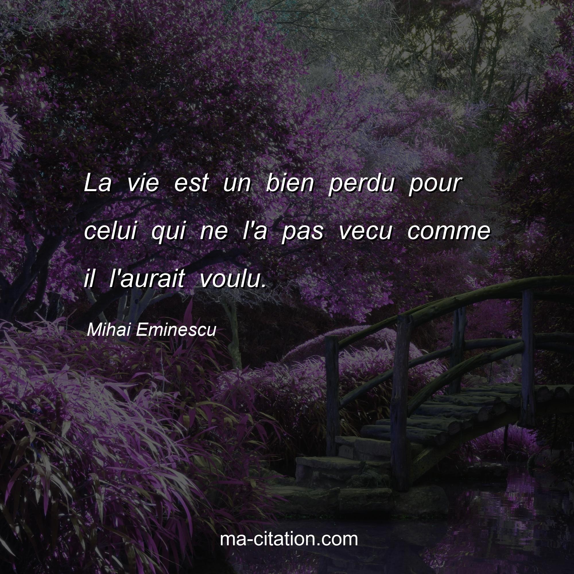 Citation sur la vie de Mihai Eminescu :La vie est un bien perdu pour celui qui ne l'a pas vecu comme il l'aurait voulu.