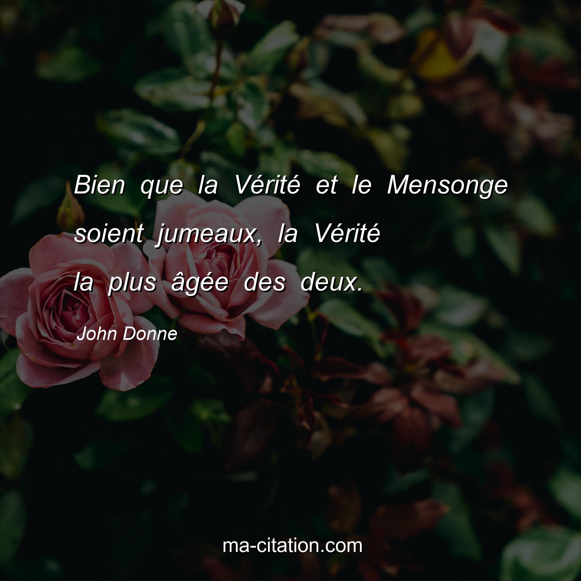 Citation sur la vie de John Donne :Bien que la Vérité et le Mensonge soient jumeaux, la Vérité la plus âgée des deux.