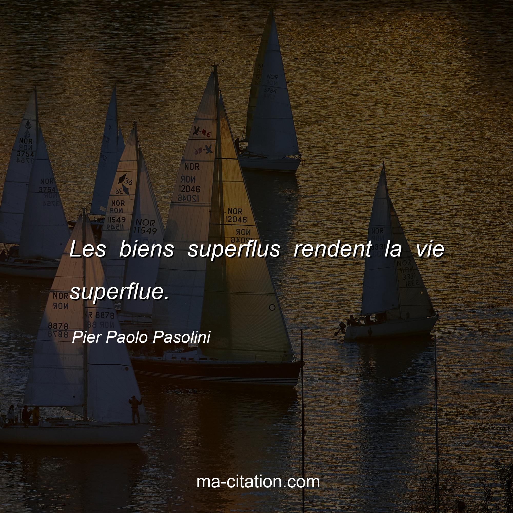 Citation sur la vie de Pier Paolo Pasolini :Les biens superflus rendent la vie superflue.