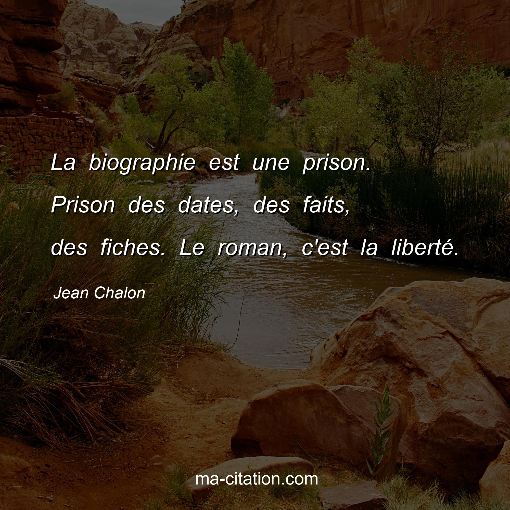 Citation sur la vie de Jean Chalon :La biographie est une prison. Prison des dates, des faits, des fiches. Le roman, c'est la liberté.