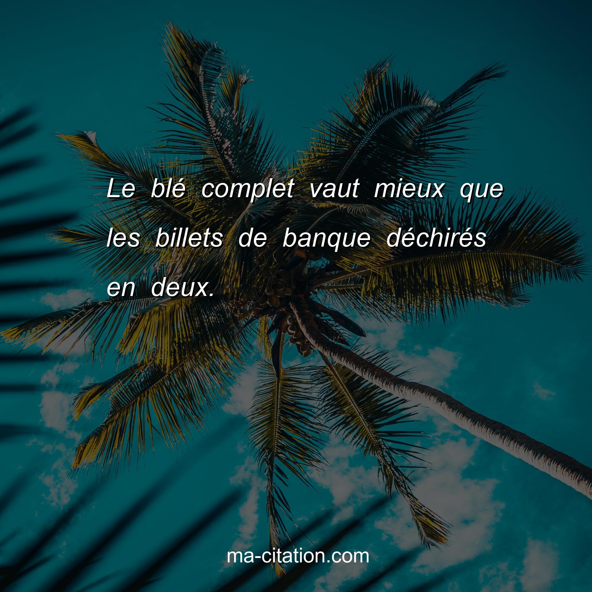 Citation sur la vie :Le blé complet vaut mieux que les billets de banque déchirés en deux.