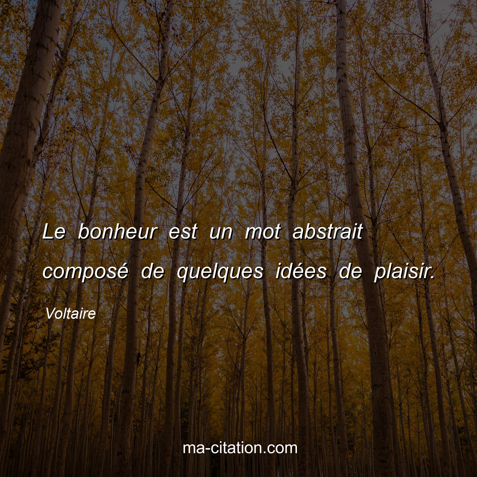 Citation sur la vie de Voltaire :Le bonheur est un mot abstrait composé de quelques idées de plaisir.