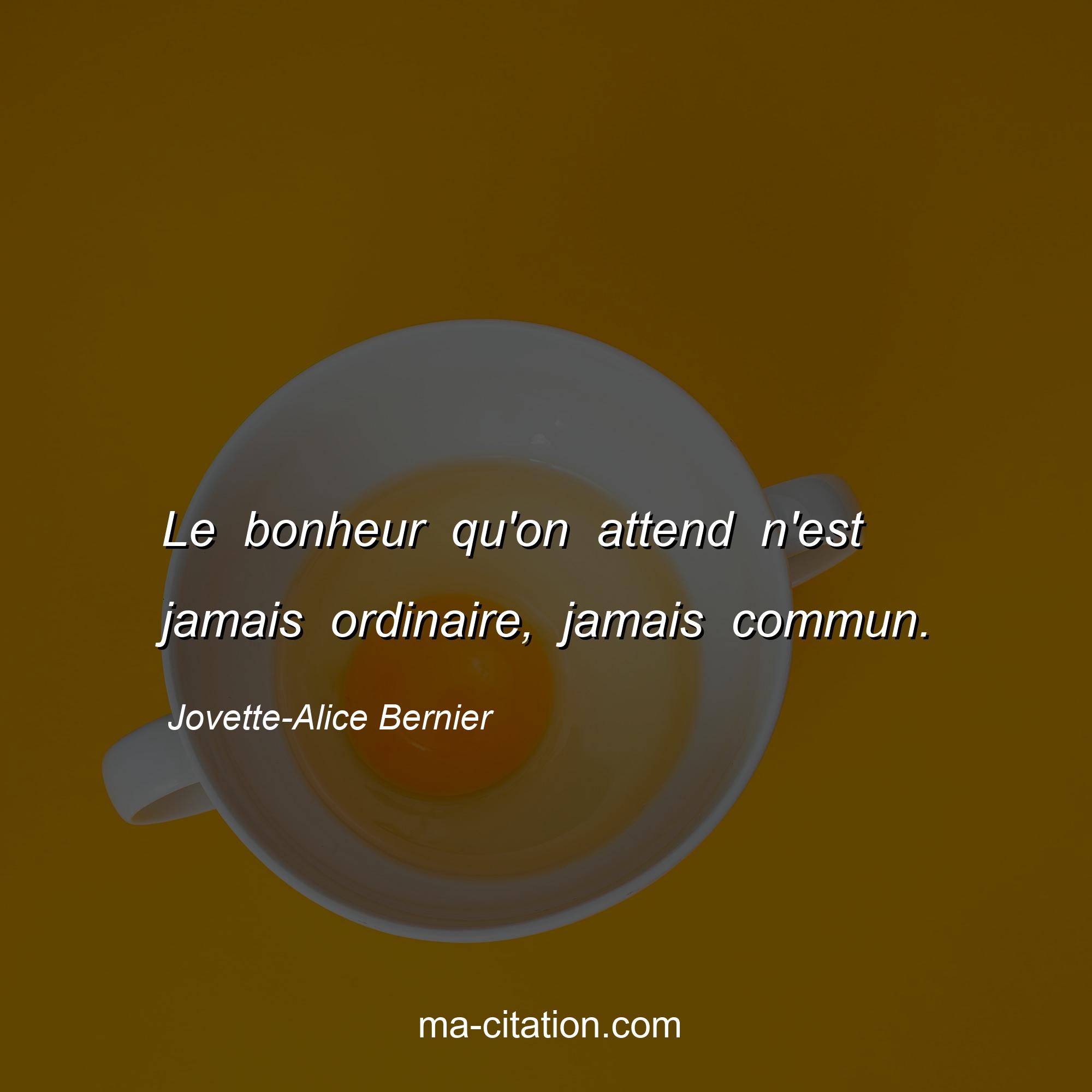 Jovette-Alice Bernier est l'auteur de la citation sur la vie "Le bonheur qu'on attend n'est jamais ordinaire, jamais commun.".