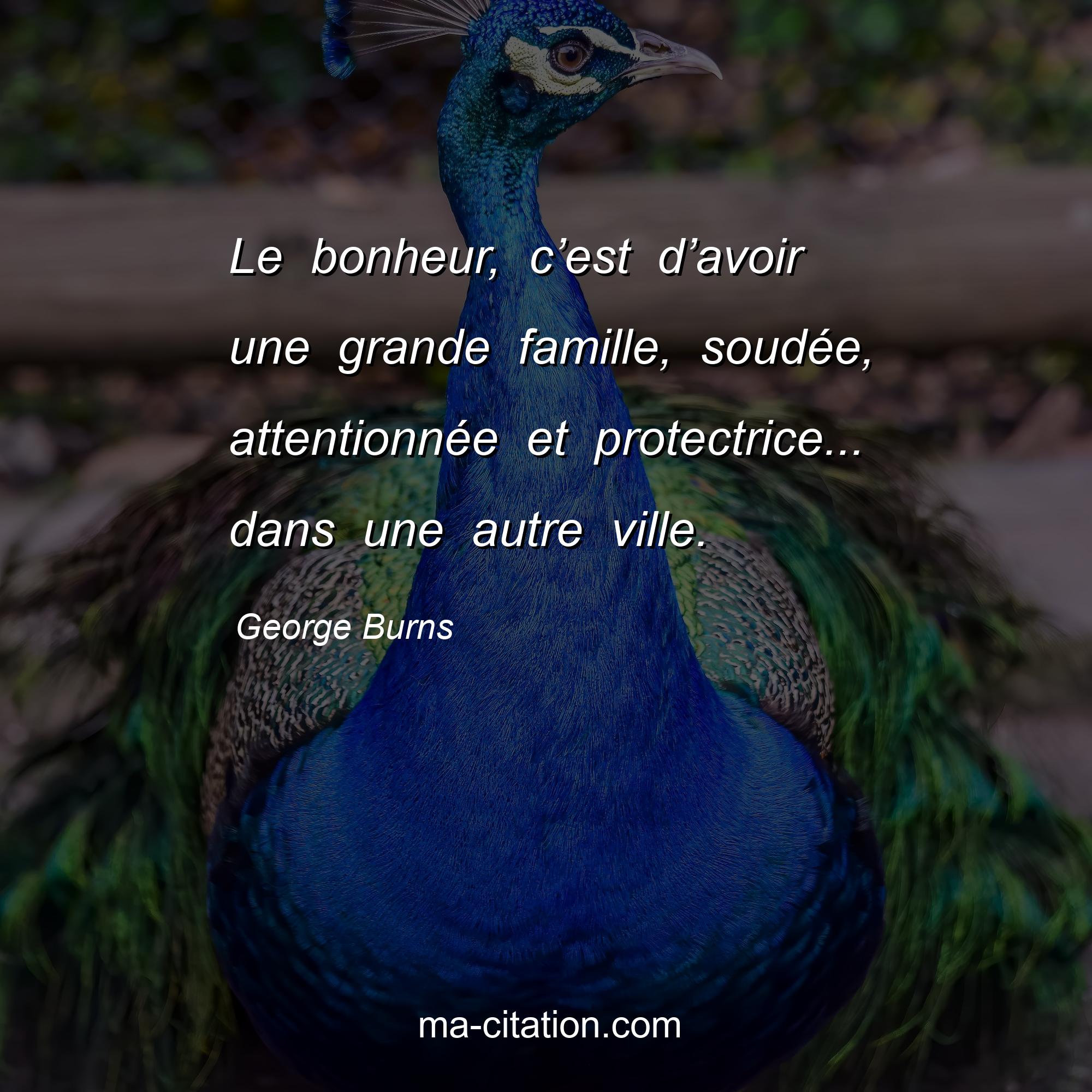 Citation sur la vie de George Burns :Le bonheur, c’est d’avoir une grande famille, soudée, attentionnée et protectrice... dans une autre ville.