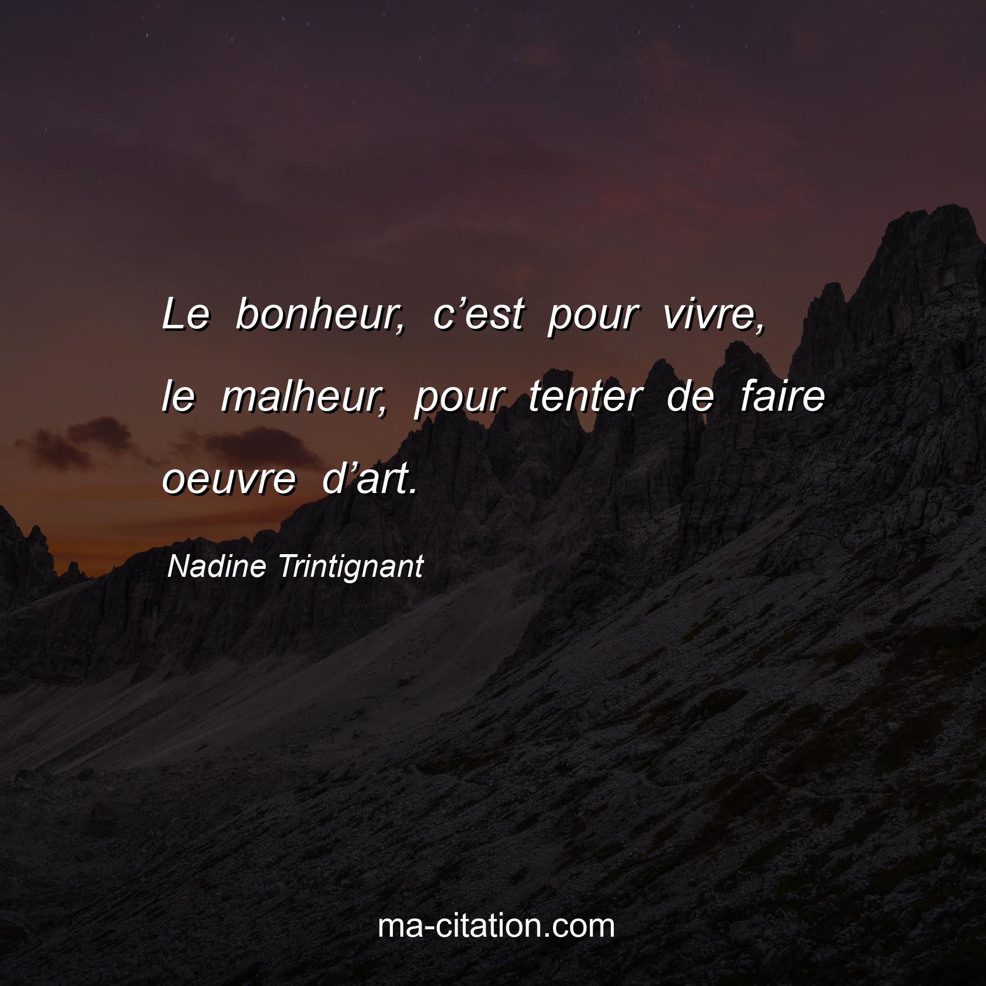 Nadine Trintignant est l'auteur de la citation sur la vie "Le bonheur, c’est pour vivre, le malheur, pour tenter de faire oeuvre d’art.".