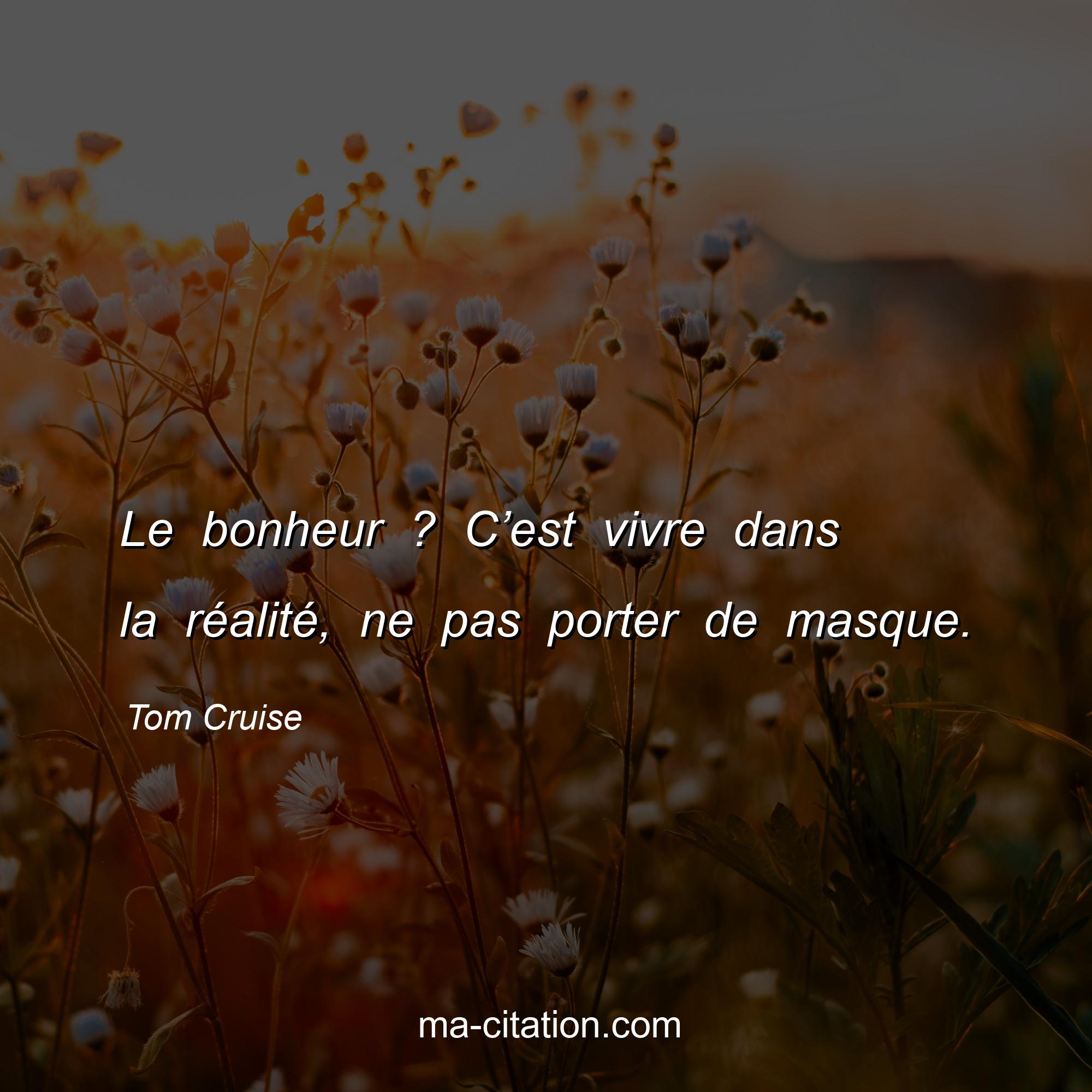 Tom Cruise est l'auteur de la citation sur la vie "Le bonheur ? C’est vivre dans la réalité, ne pas porter de masque.".