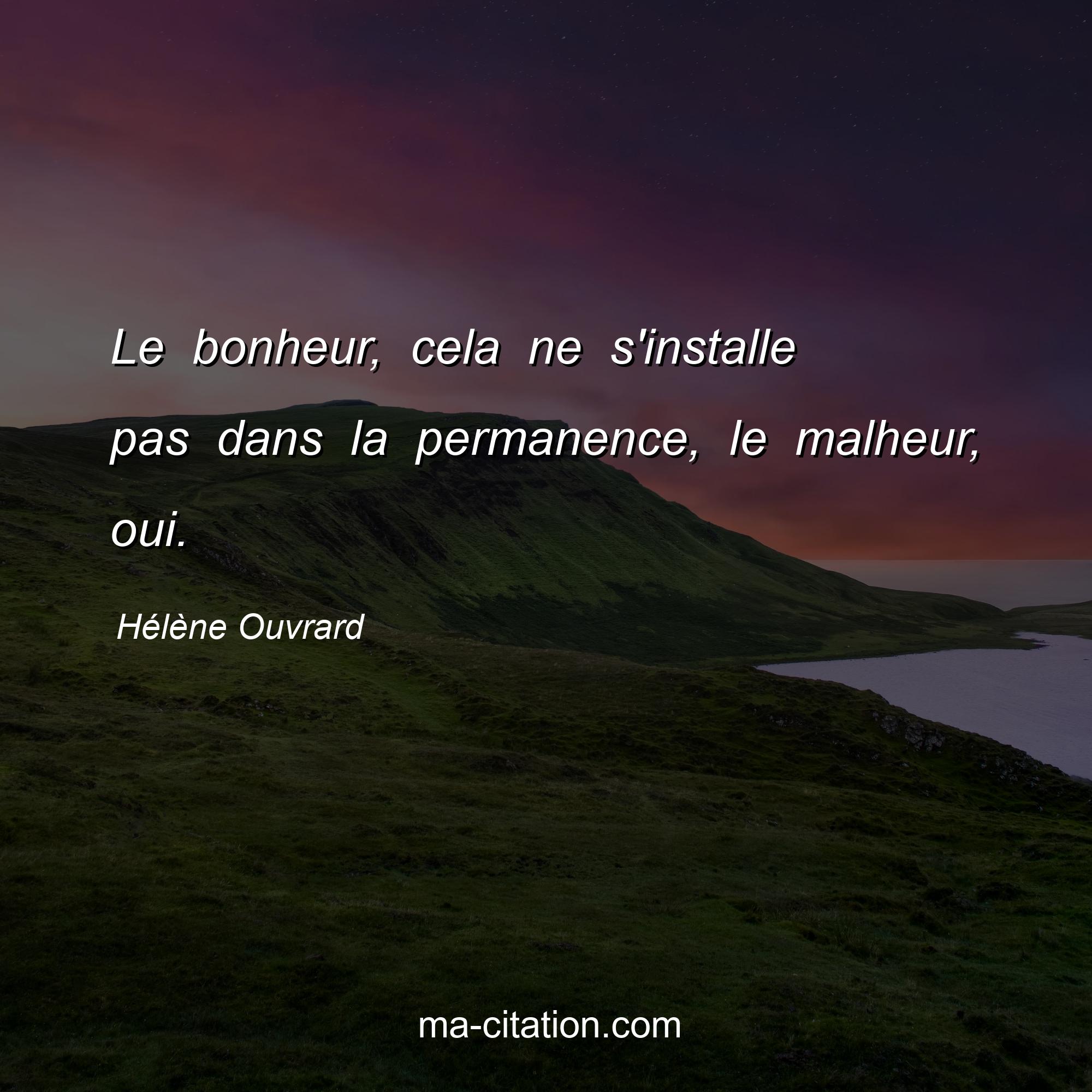 Hélène Ouvrard est l'auteur de la citation sur la vie "Le bonheur, cela ne s'installe pas dans la permanence, le malheur, oui.".
