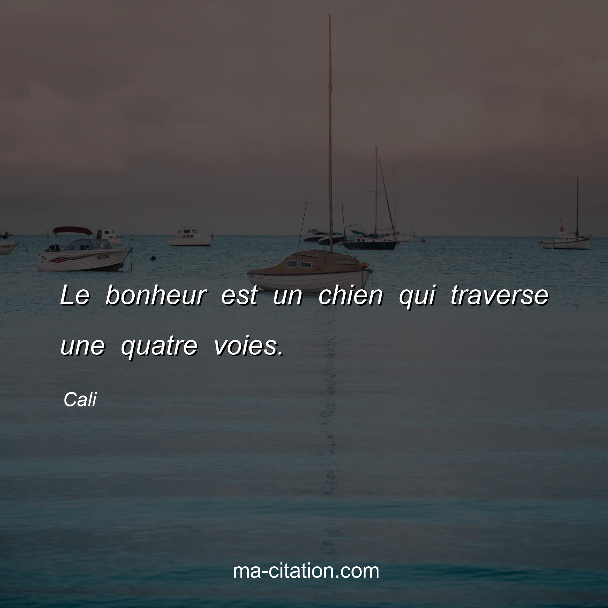 Cali est l'auteur de la citation sur la vie "Le bonheur est un chien qui traverse une quatre voies.".