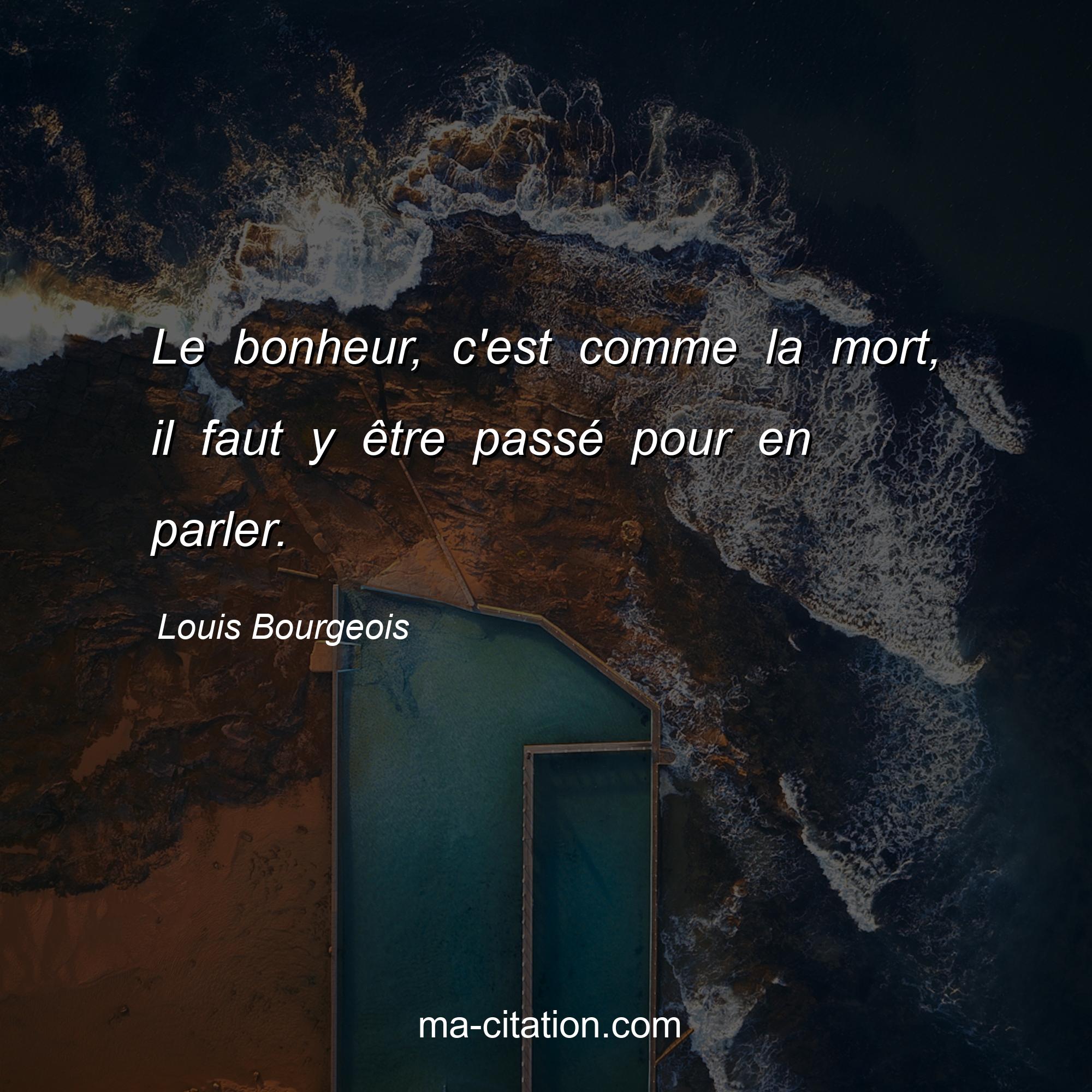 Louis Bourgeois est l'auteur de la citation sur la vie "Le bonheur, c'est comme la mort, il faut y être passé pour en parler.".