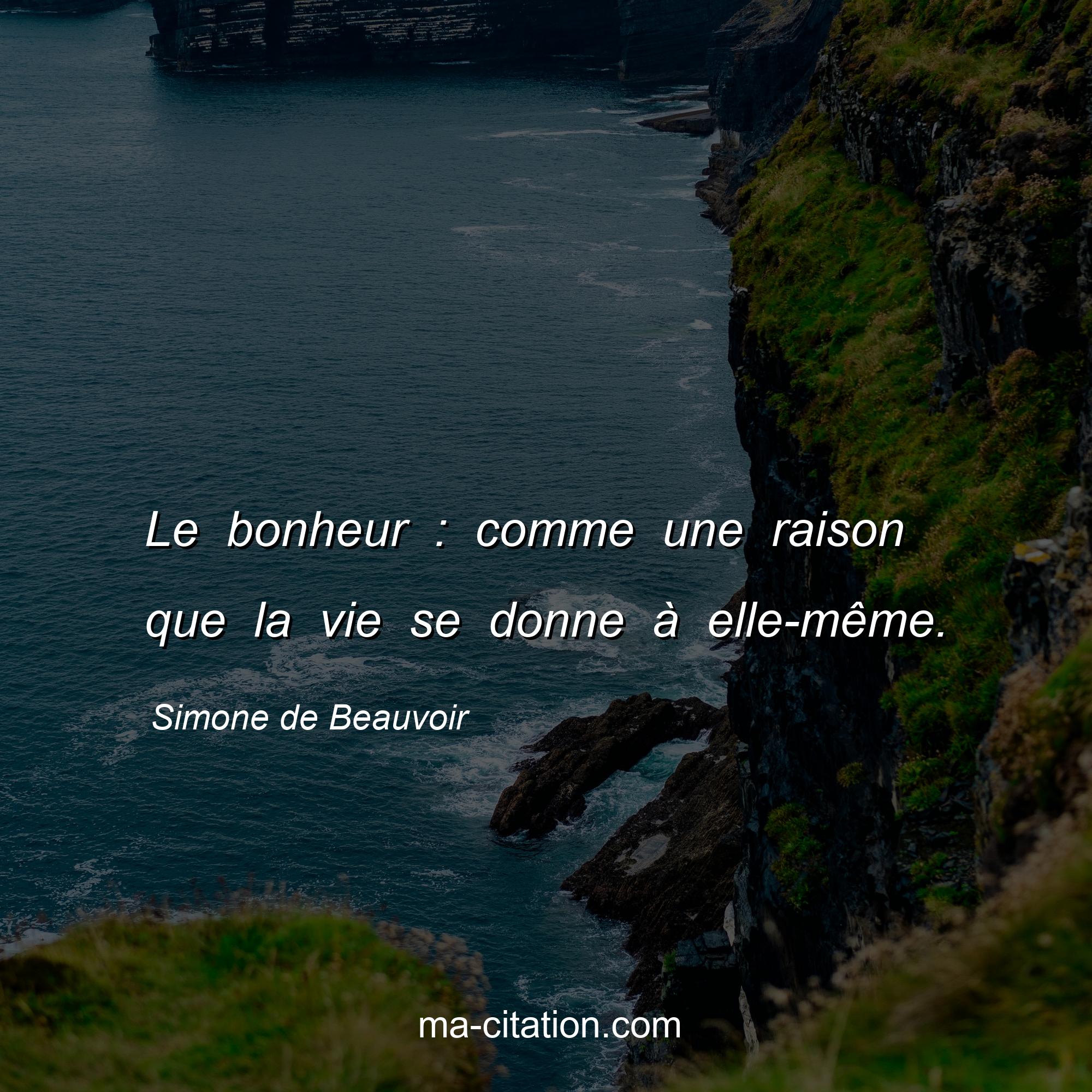 Simone de Beauvoir est l'auteur de la citation sur la vie "Le bonheur : comme une raison que la vie se donne à elle-même.".