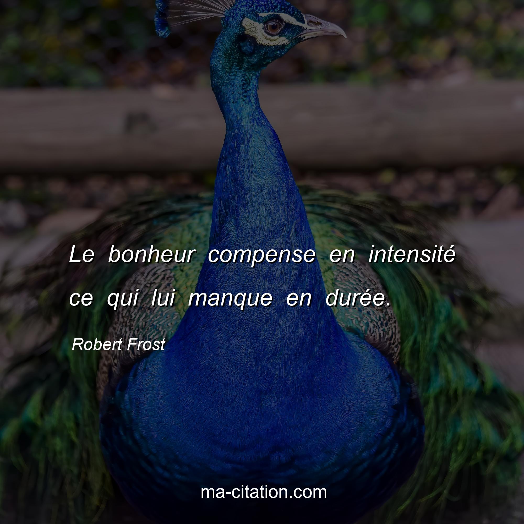 Citation sur la vie de Robert Frost :Le bonheur compense en intensité ce qui lui manque en durée.