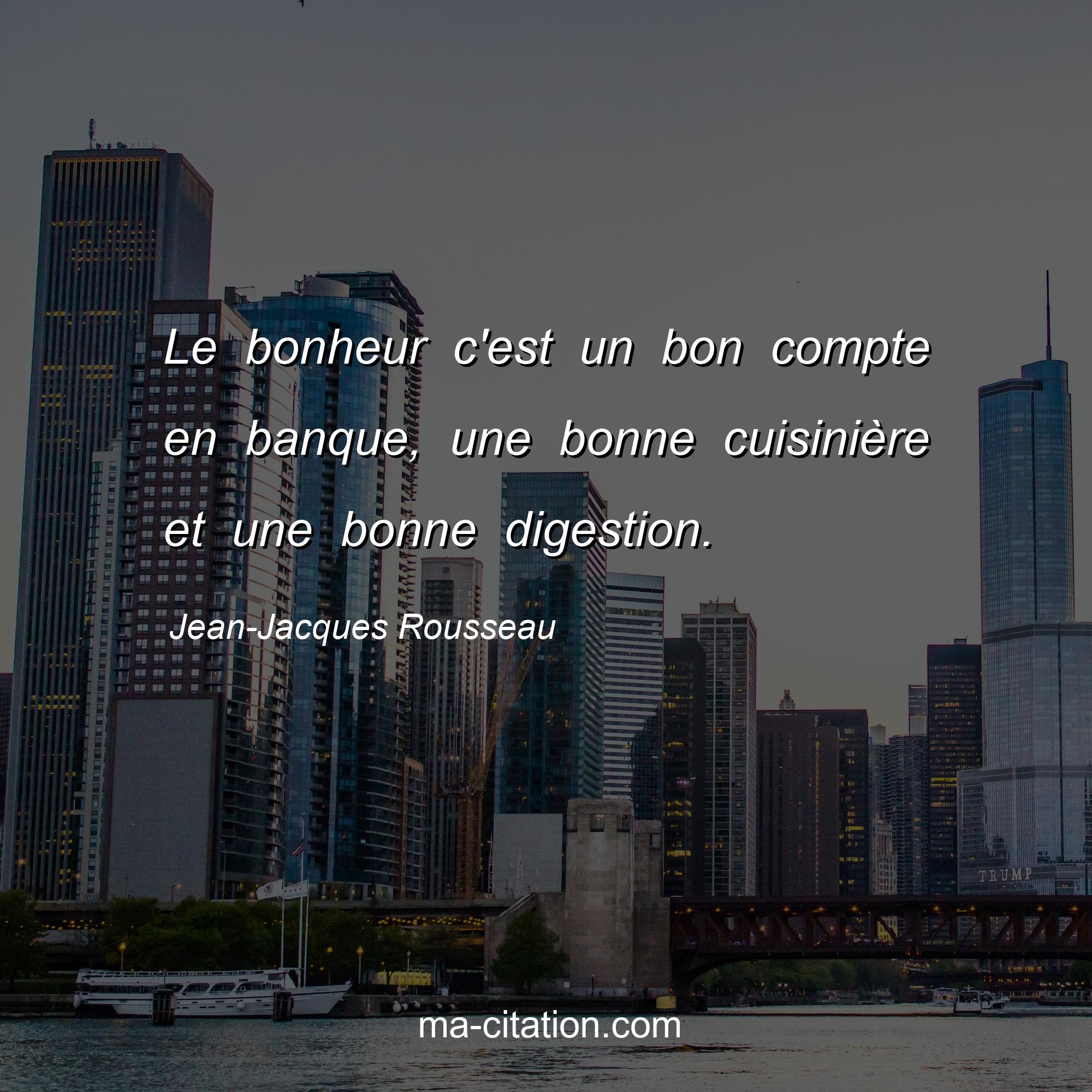 Citation sur la vie de Jean-Jacques Rousseau :Le bonheur c'est un bon compte en banque, une bonne cuisinière et une bonne digestion.