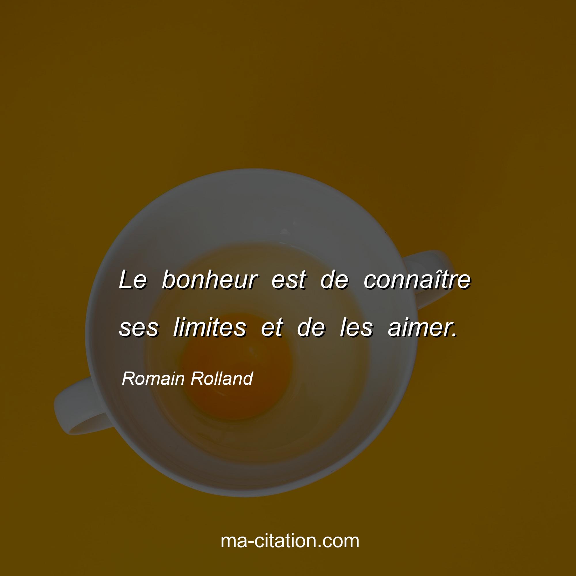 Citation sur la vie de Romain Rolland :Le bonheur est de connaître ses limites et de les aimer.
