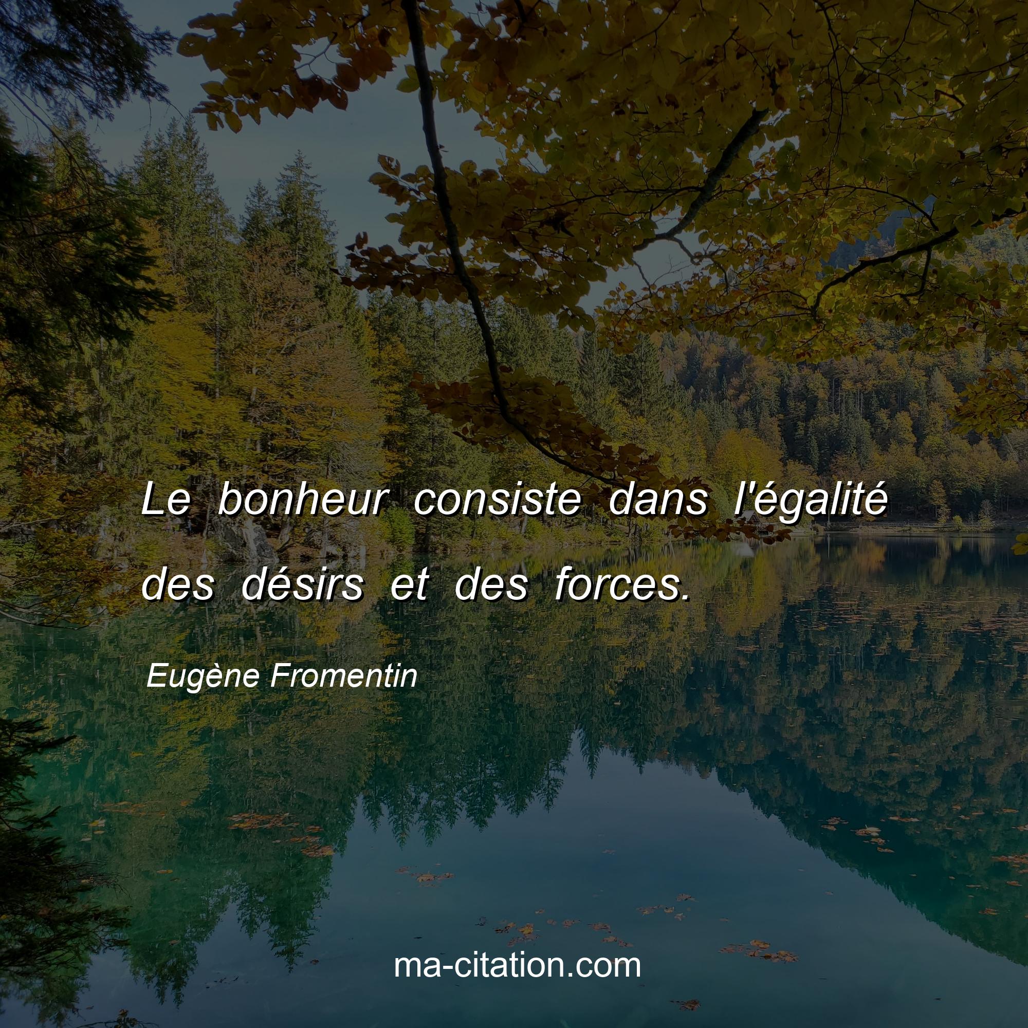 Citation sur la vie d'Eugène Fromentin :Le bonheur consiste dans l'égalité des désirs et des forces.