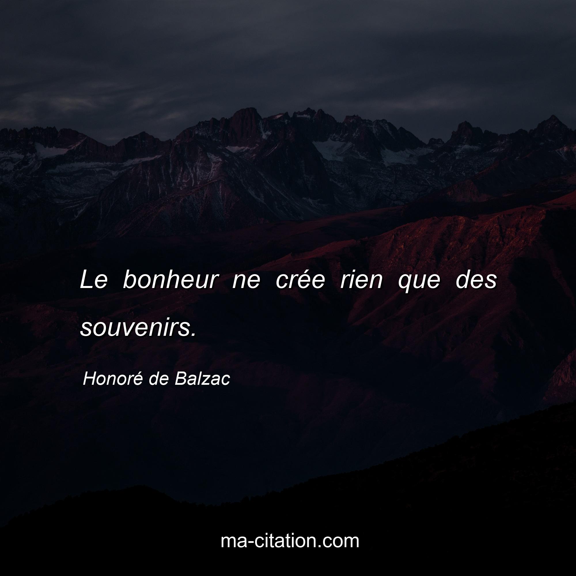 Citation sur la vie de Honoré de Balzac :Le bonheur ne crée rien que des souvenirs.