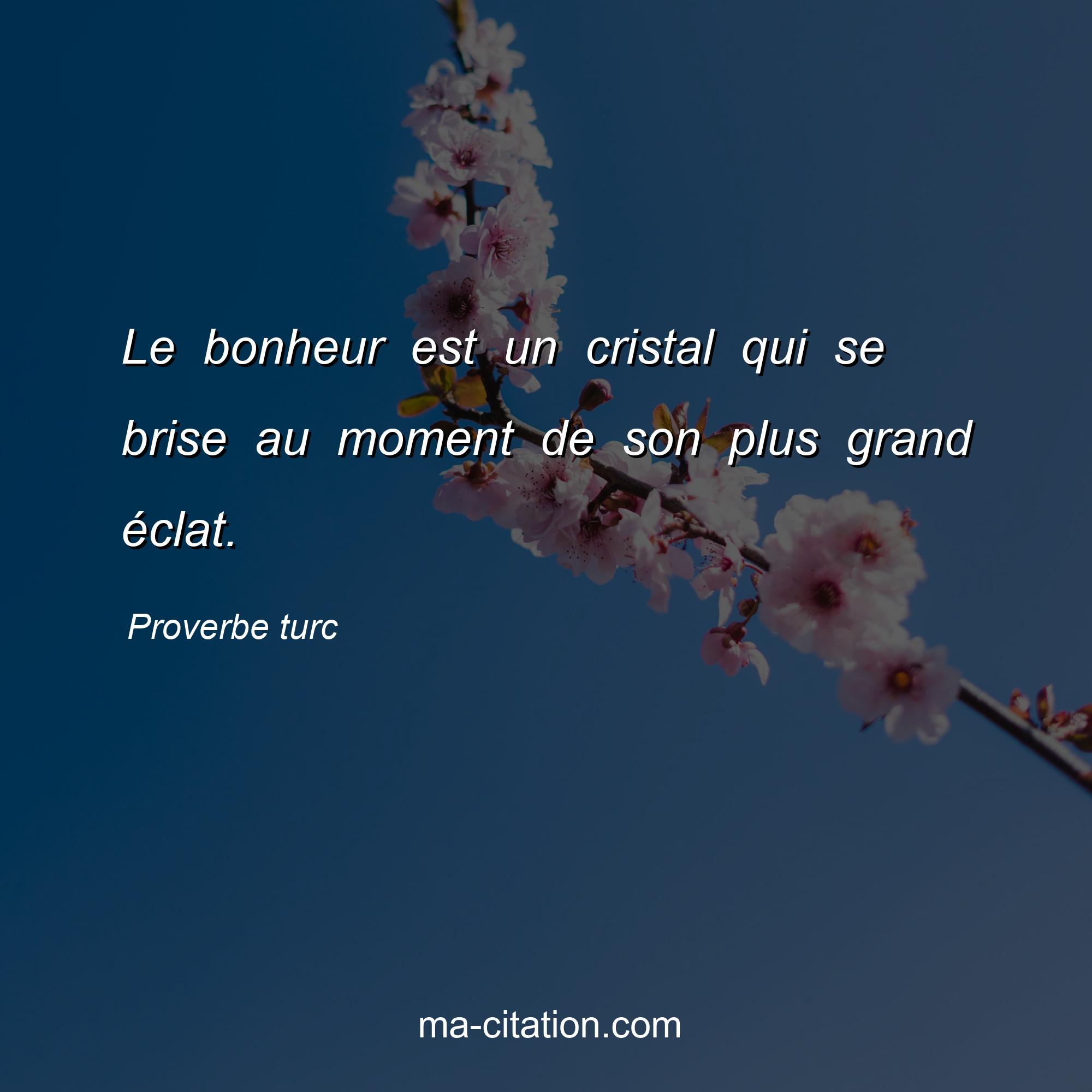 Proverbe turc sur la vie :Le bonheur est un cristal qui se brise au moment de son plus grand éclat.