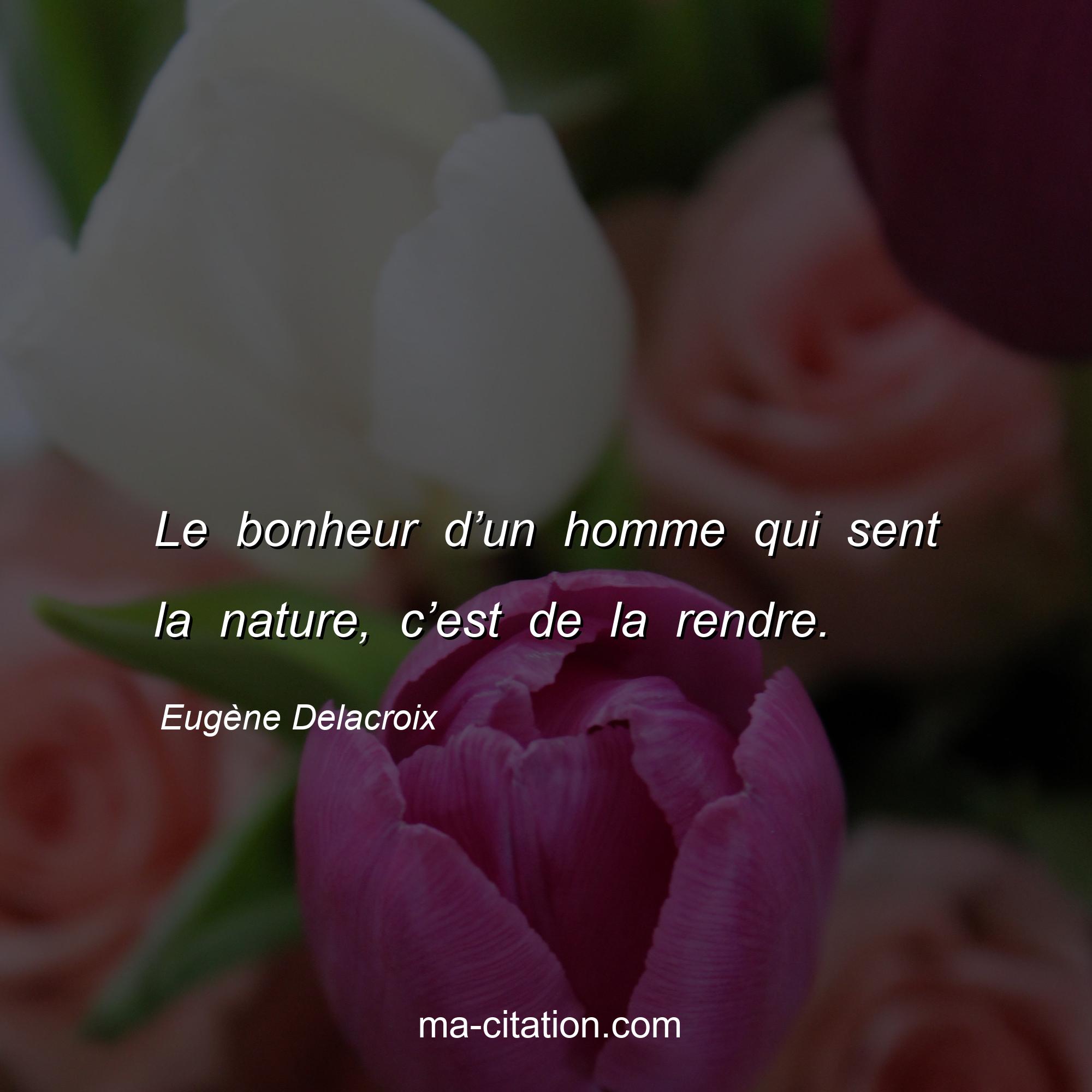 Citation sur la vie d'Eugène Delacroix :Le bonheur d’un homme qui sent la nature, c’est de la rendre.