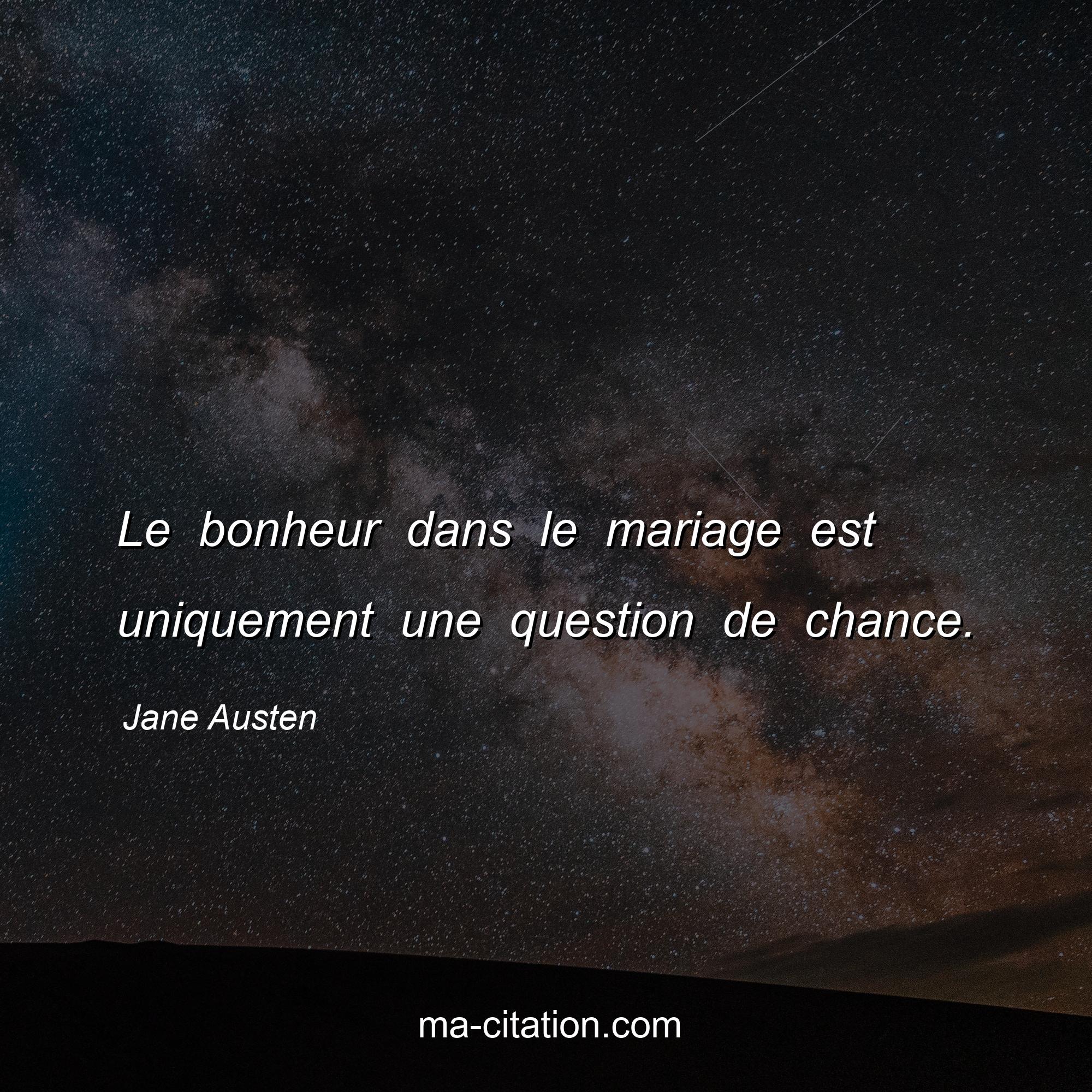 Citation sur la vie de Jane Austen :Le bonheur dans le mariage est uniquement une question de chance.