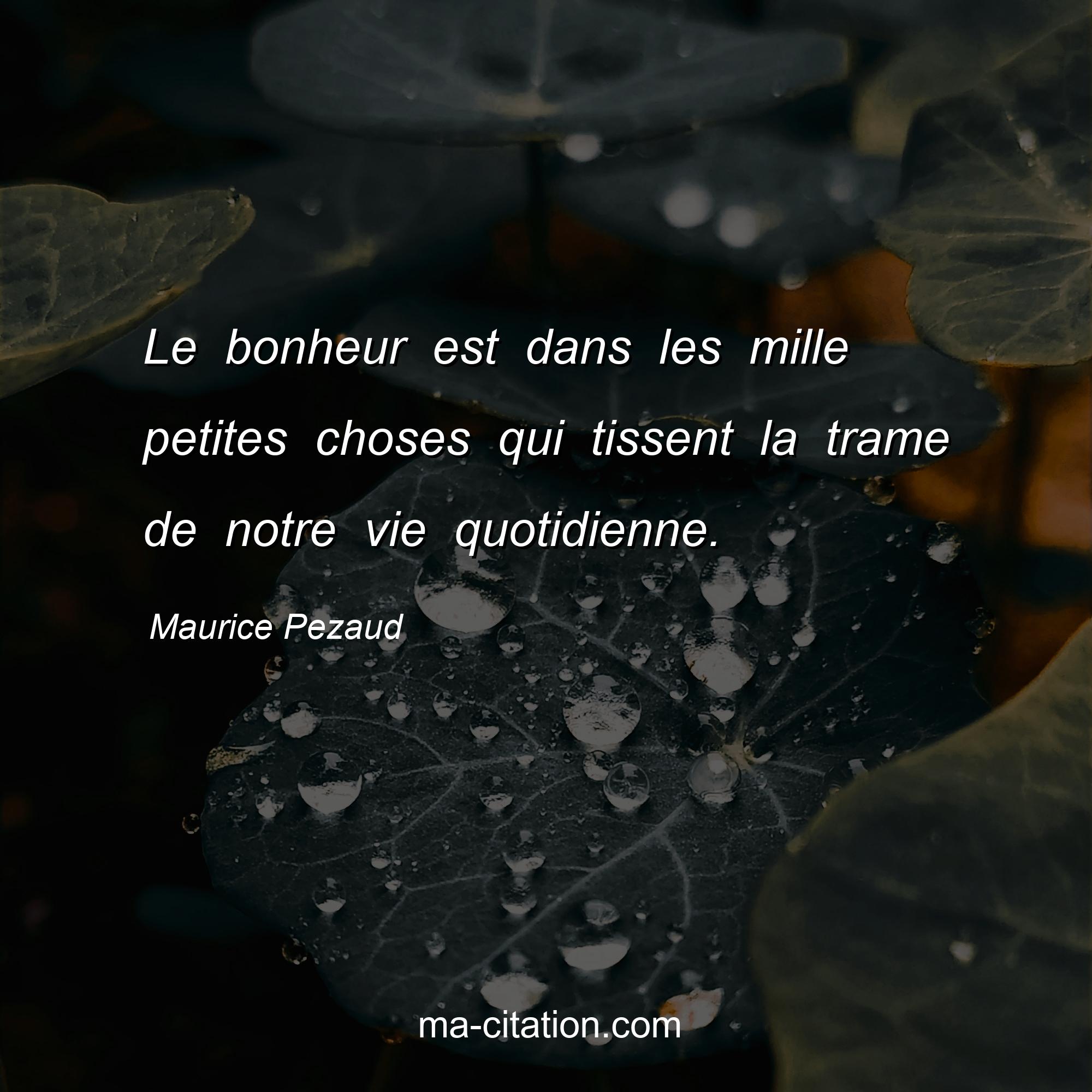 Maurice Pezaud est l'auteur de la citation sur la vie "Le bonheur est dans les mille petites choses qui tissent la trame de notre vie quotidienne.".