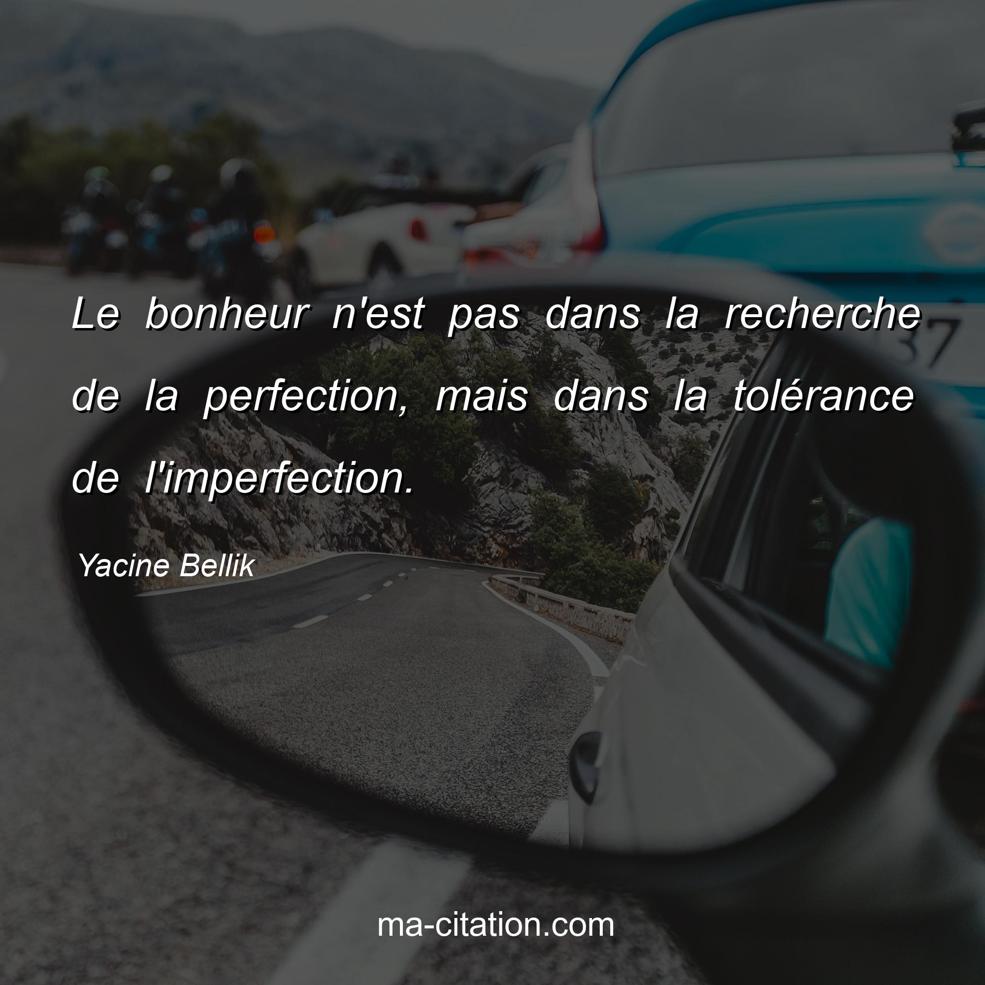 Yacine Bellik est l'auteur de la citation sur la vie "Le bonheur n'est pas dans la recherche de la perfection, mais dans la tolérance de l'imperfection.".