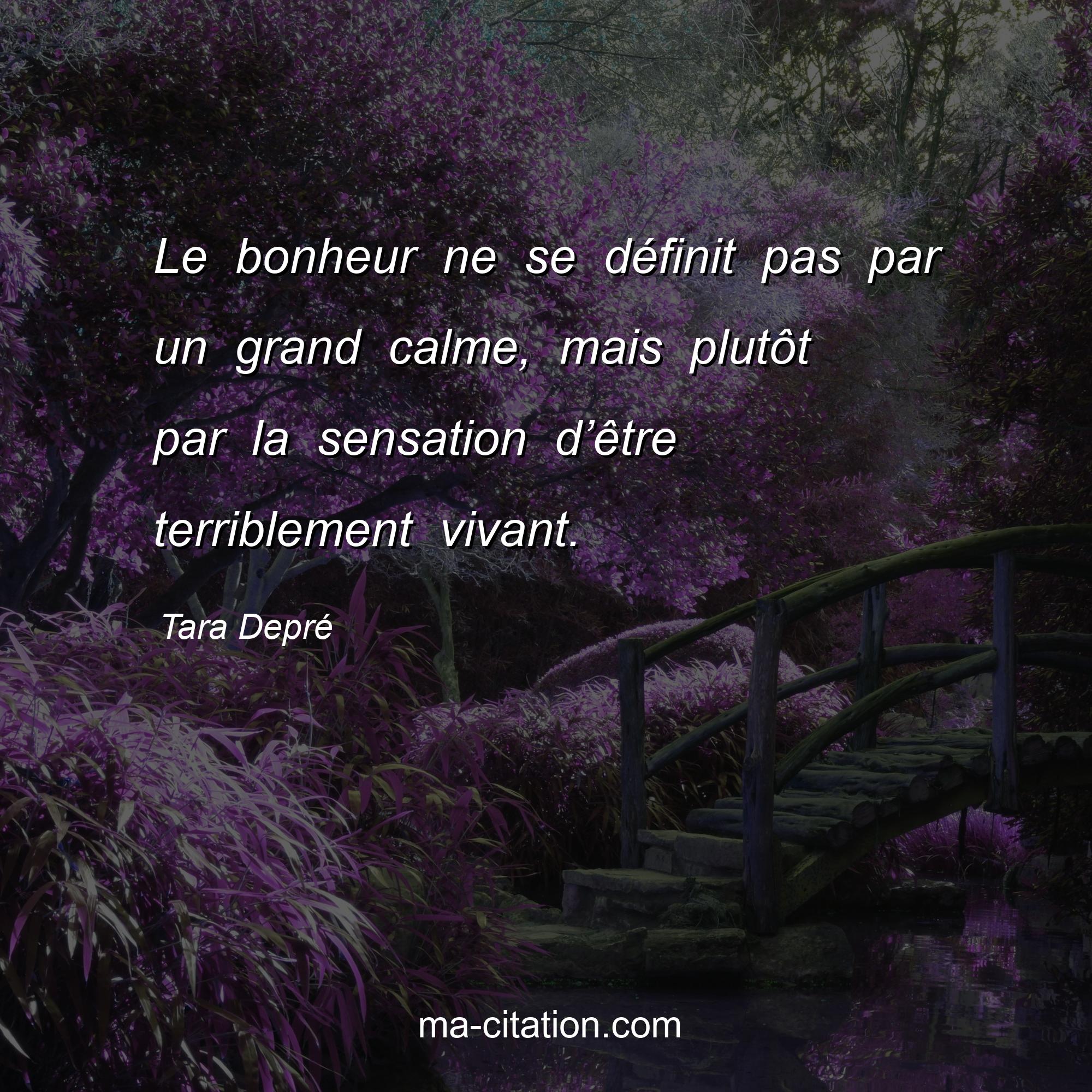 Tara Depré est l'auteur de la citation sur la vie "Le bonheur ne se définit pas par un grand calme, mais plutôt par la sensation d’être terriblement vivant.".