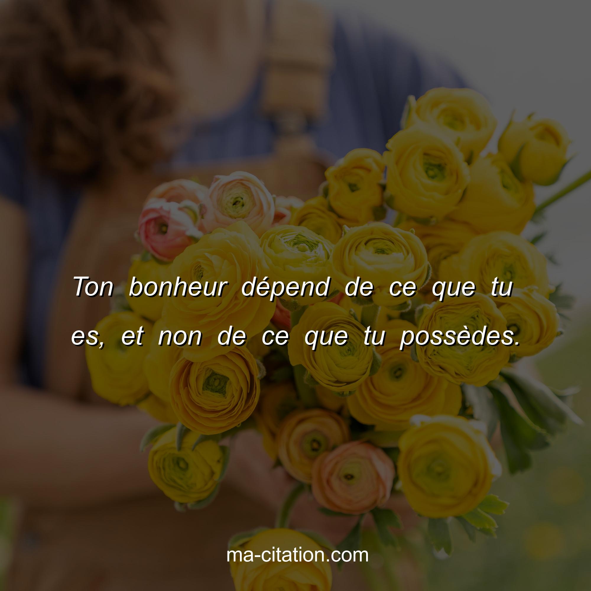 Ton bonheur dépend de ce que tu es, et non de ce que tu possèdes.