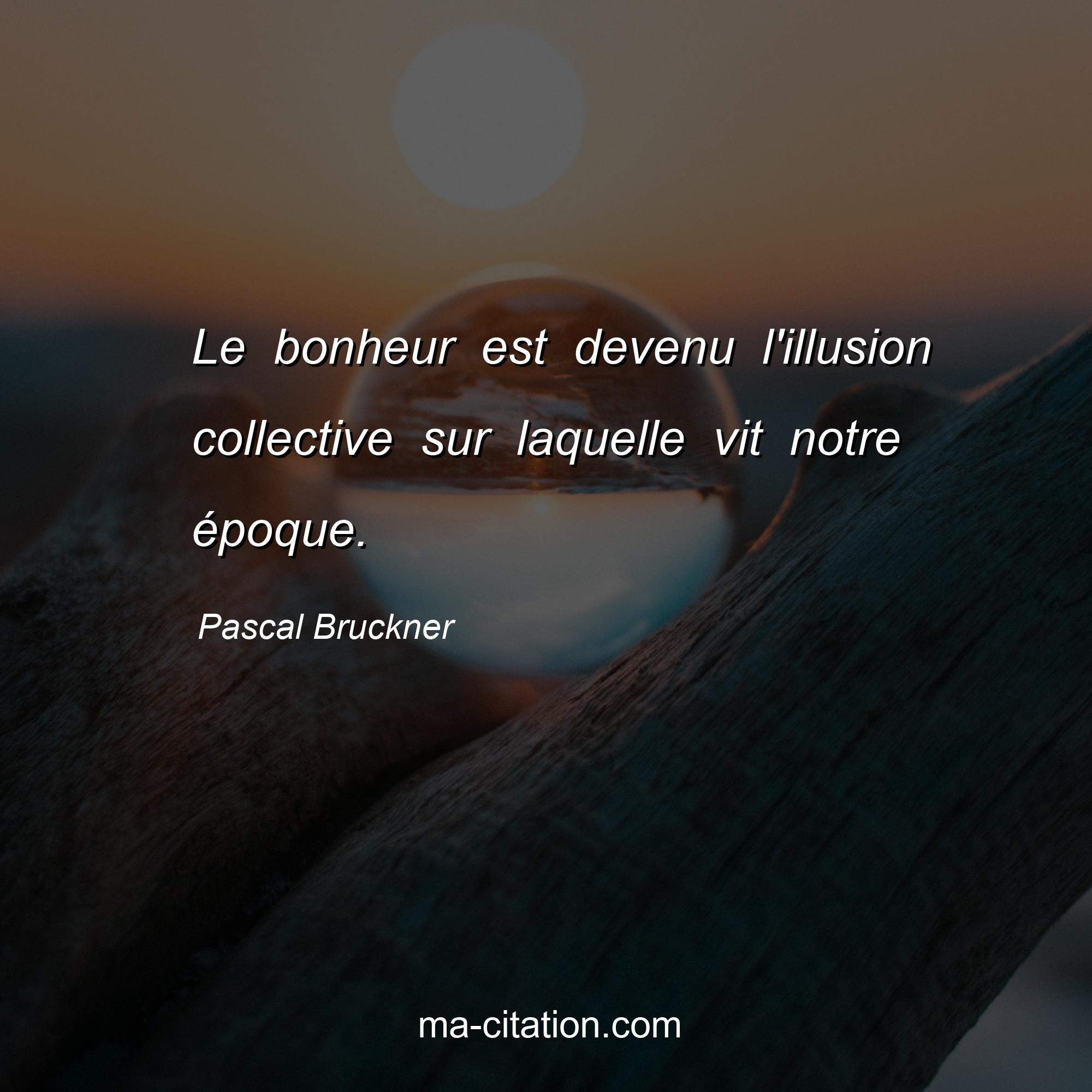 Citation sur la vie de Pascal Bruckner :Le bonheur est devenu l'illusion collective sur laquelle vit notre époque.